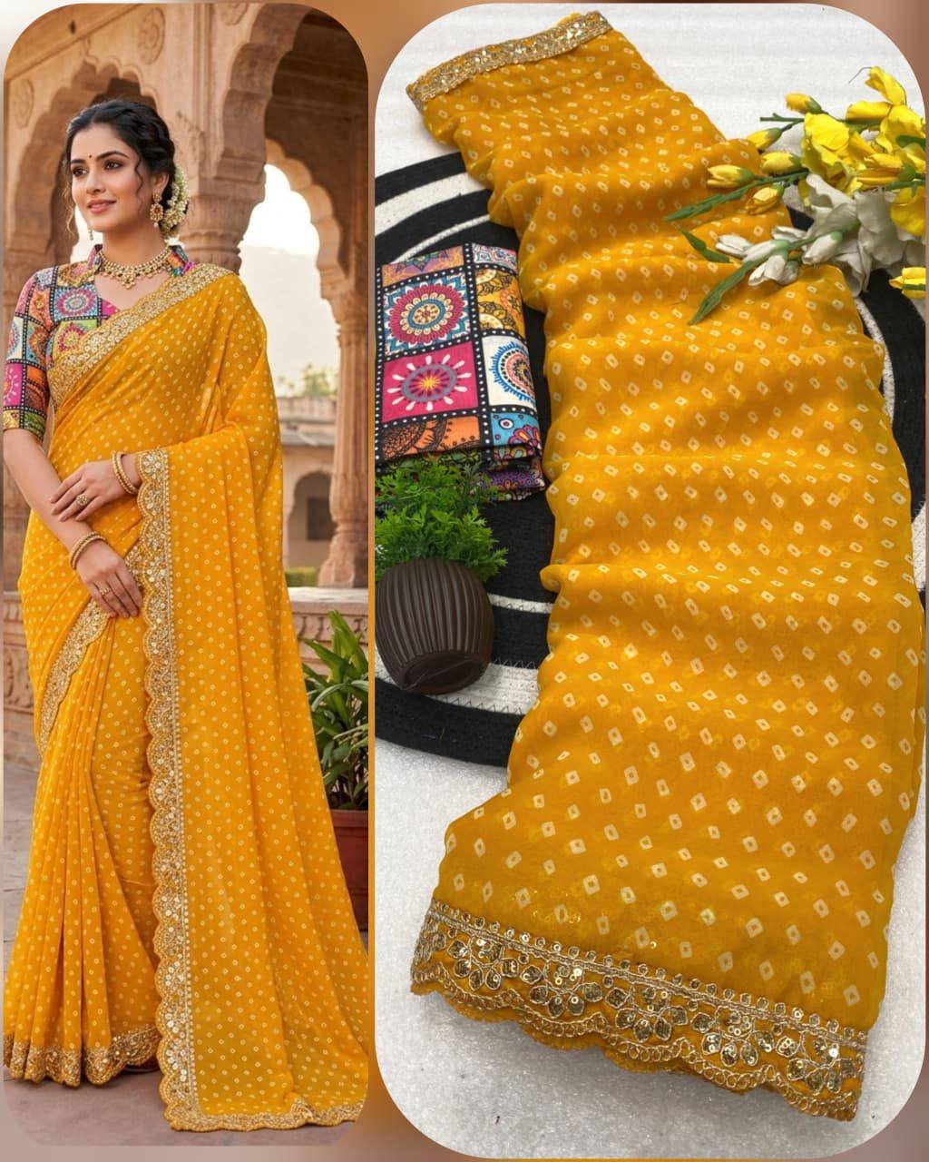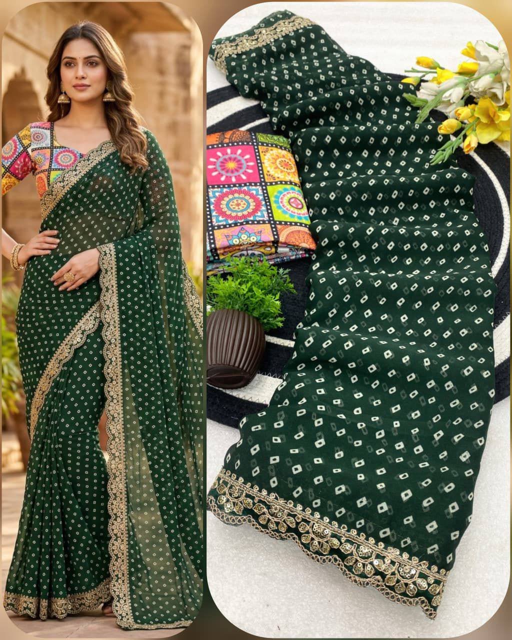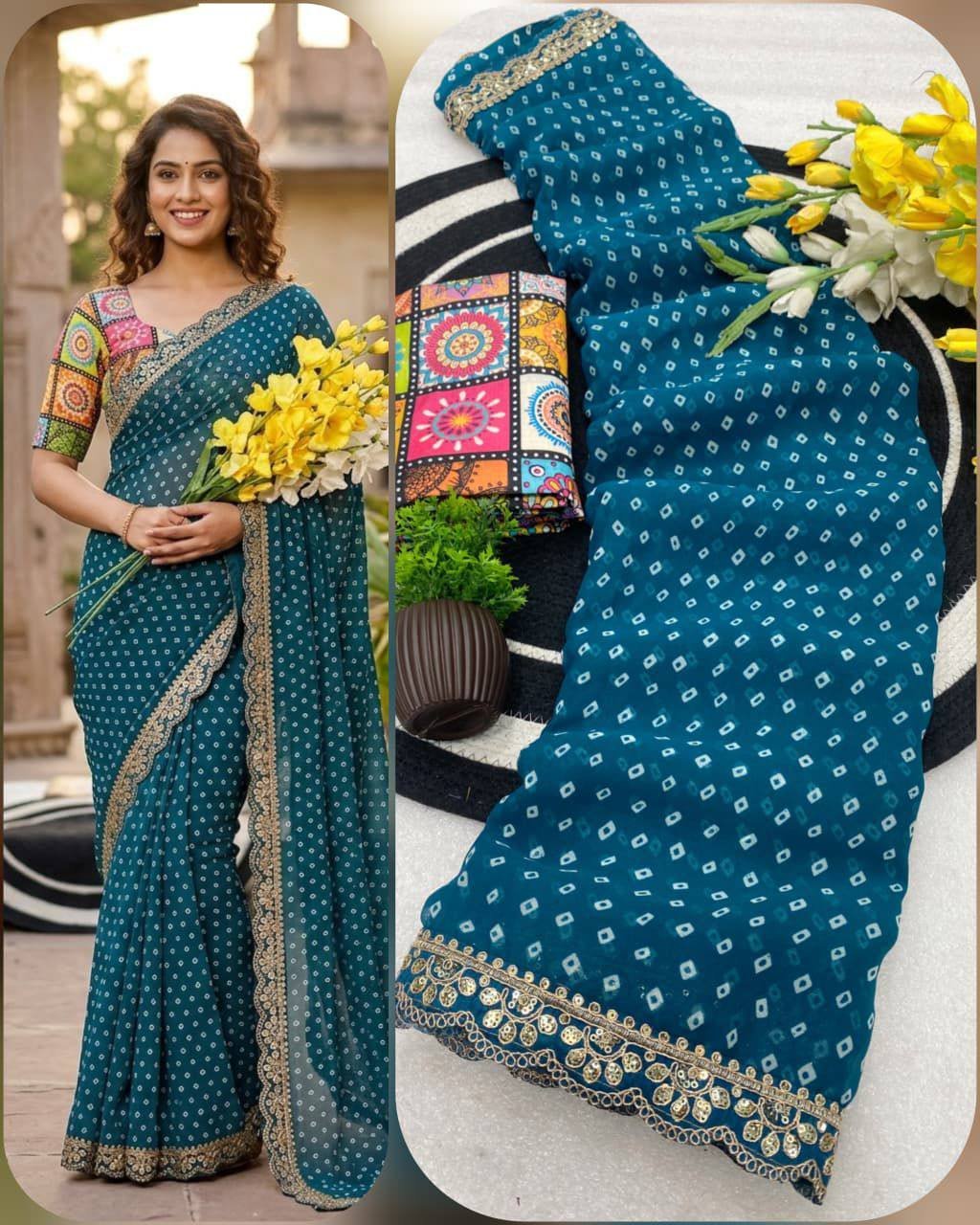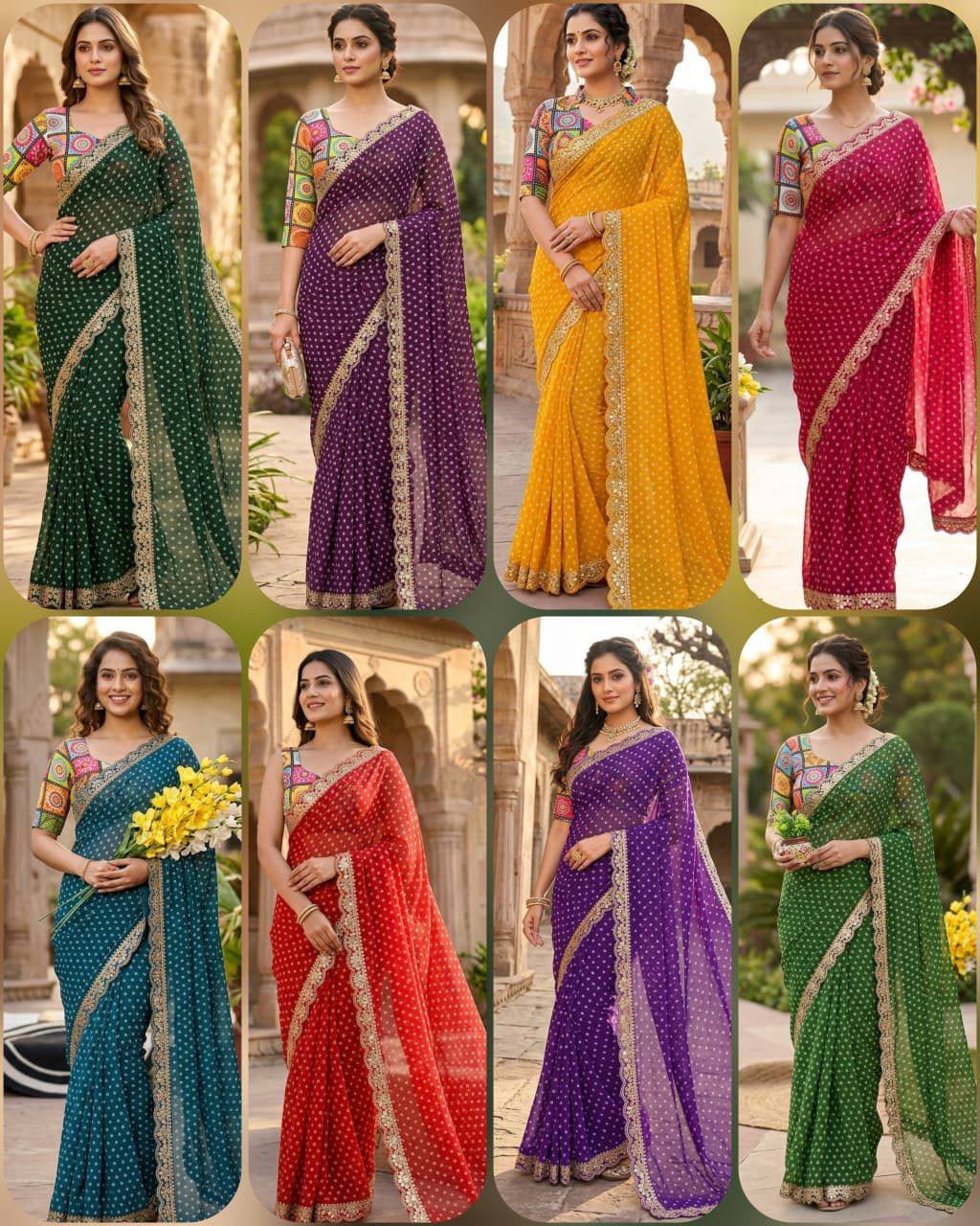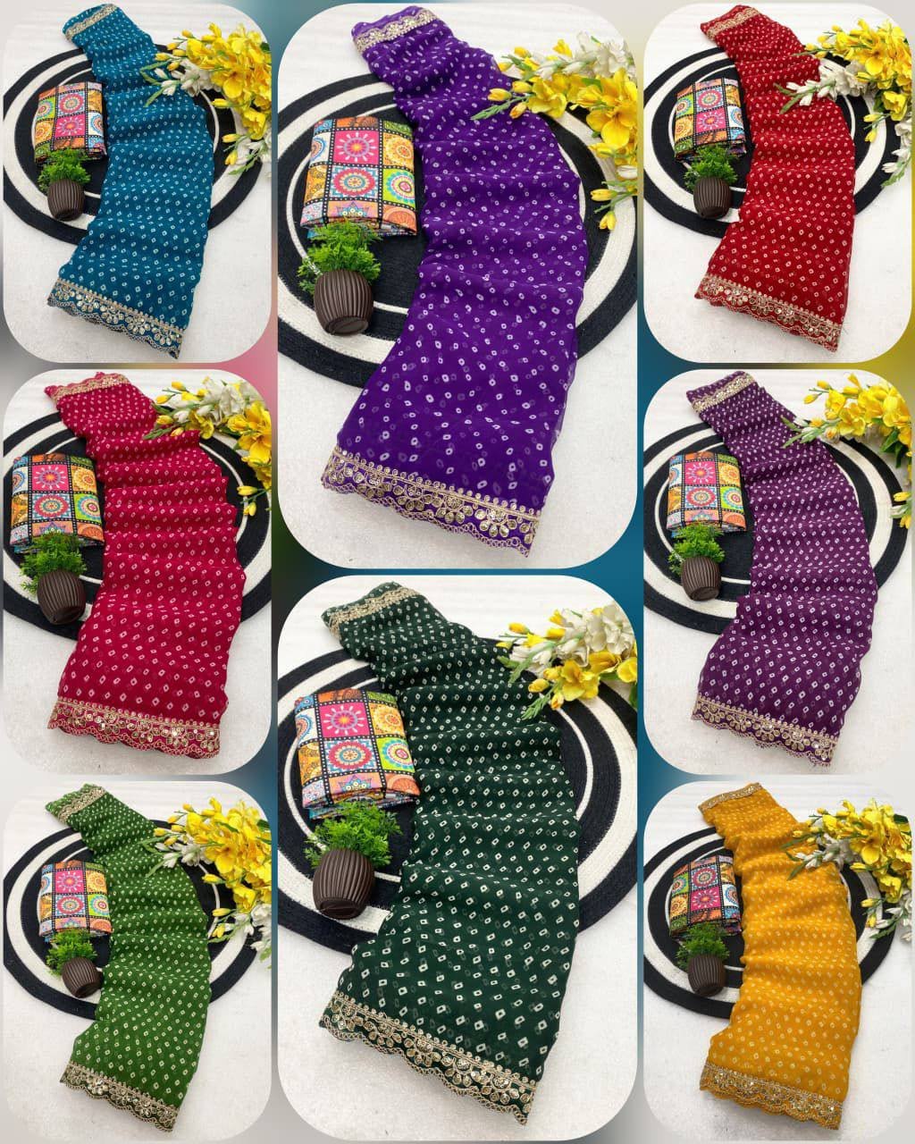 Bandhej Soft Georgette Silk Saree with Embroidery Work (8 Colors)