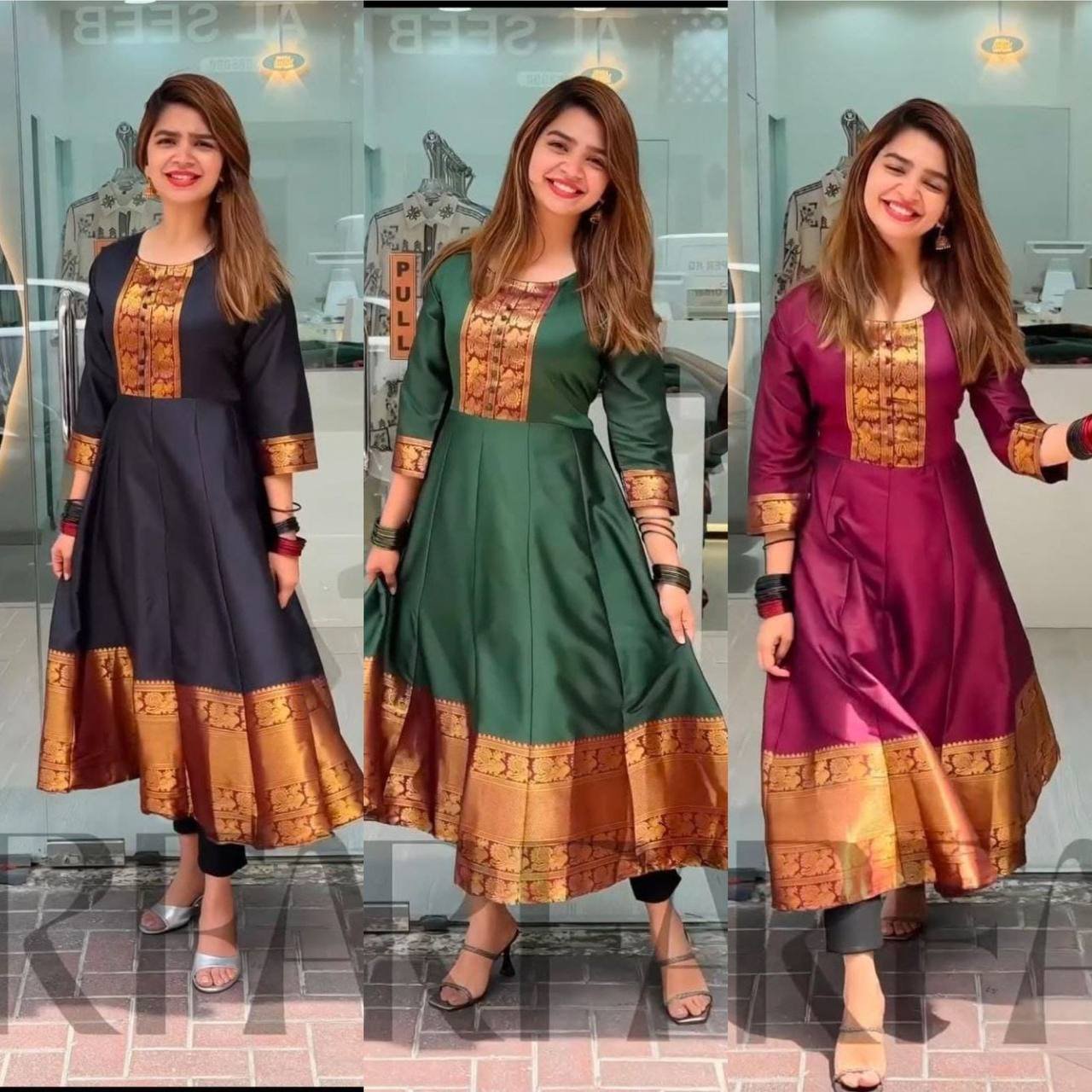 Beautiful Anarkali Gown in lace border & beautiful three colour