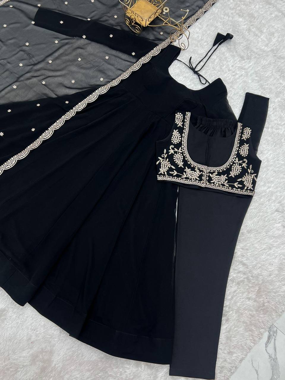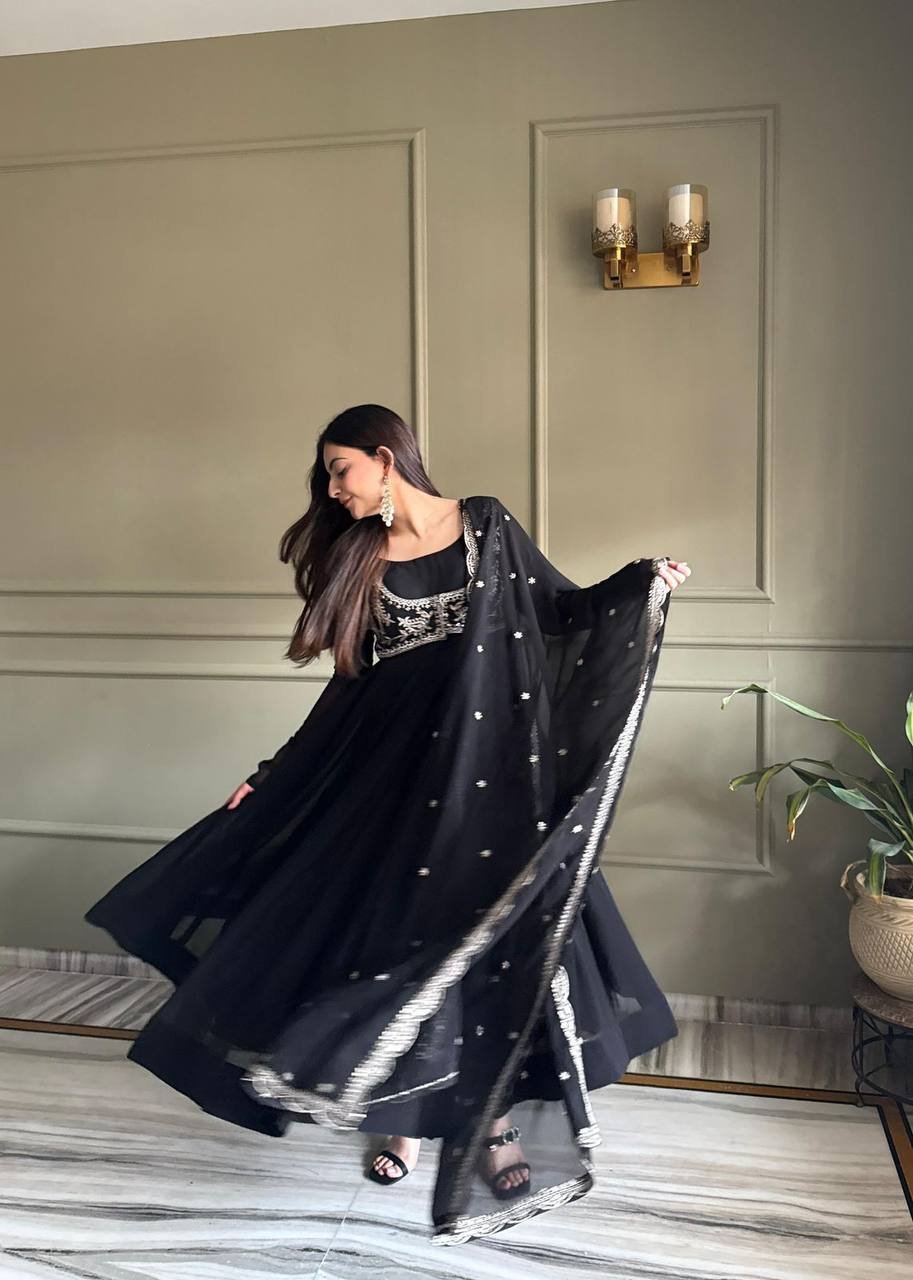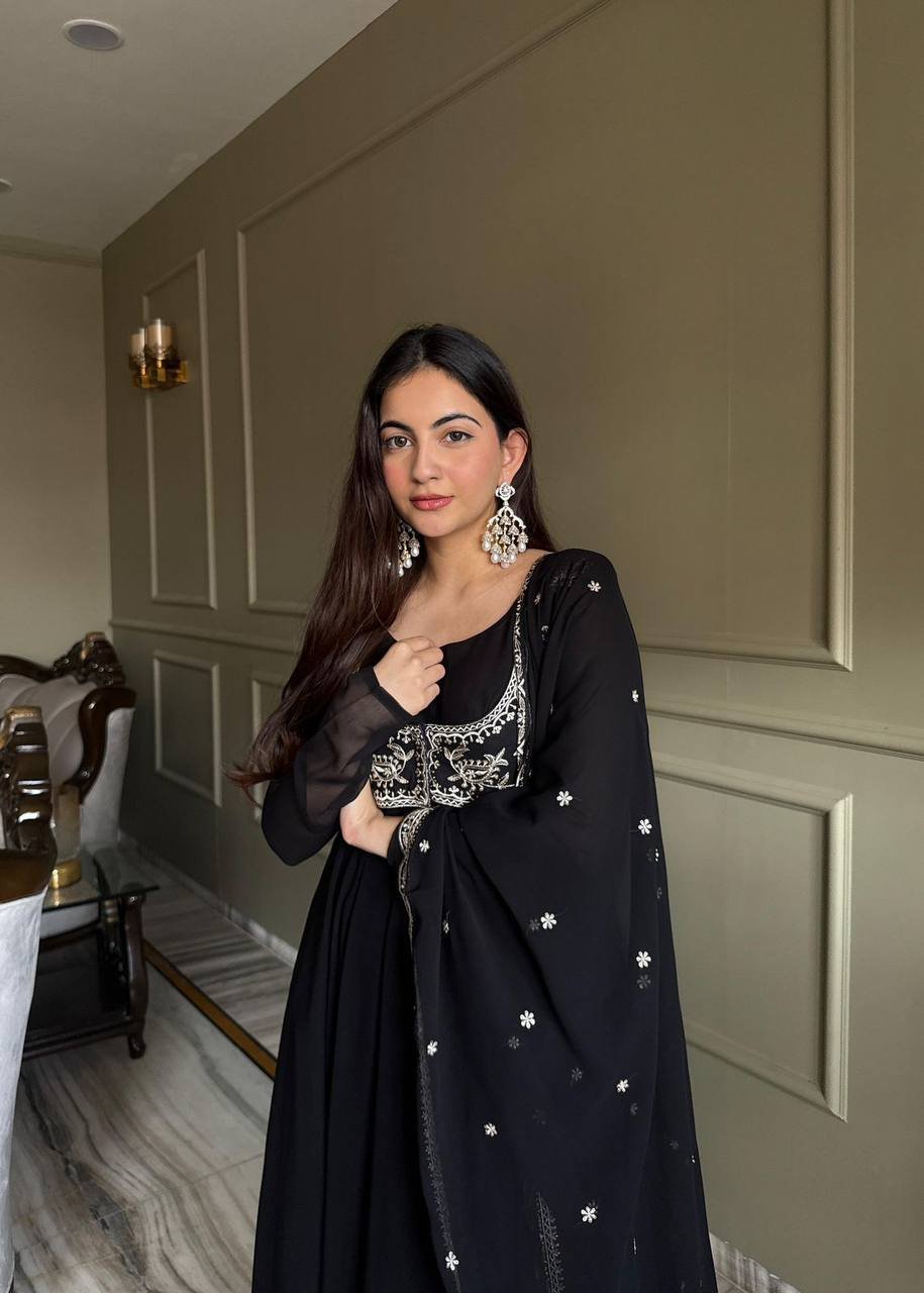 Be the first to review “Black Embroidered Anarkali Suit, Dupatta and Koti”
