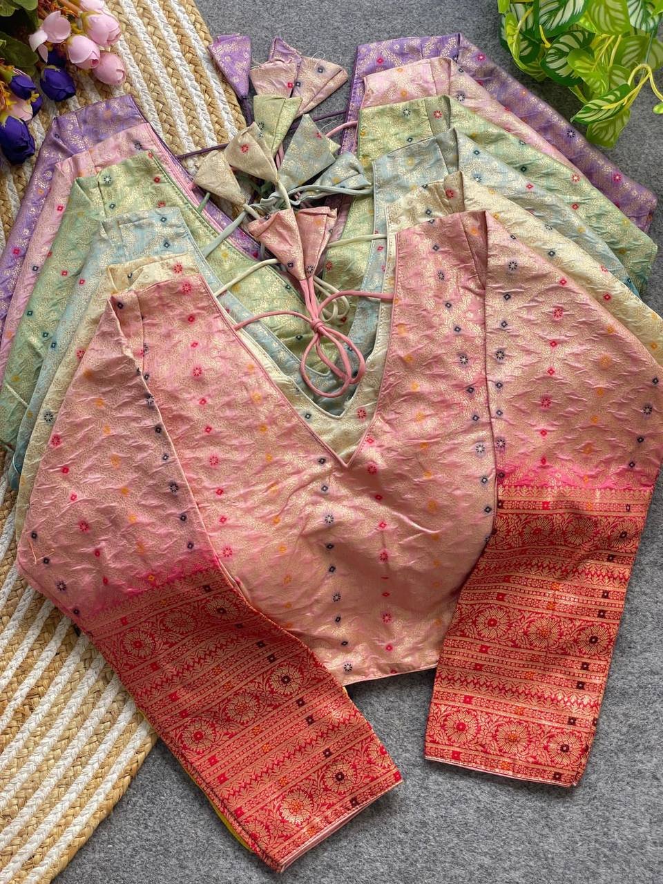 Beauty of golden embroidery work all over blouse in Sabyasachi Designs (9 Colors)