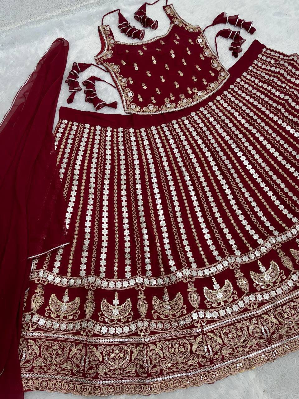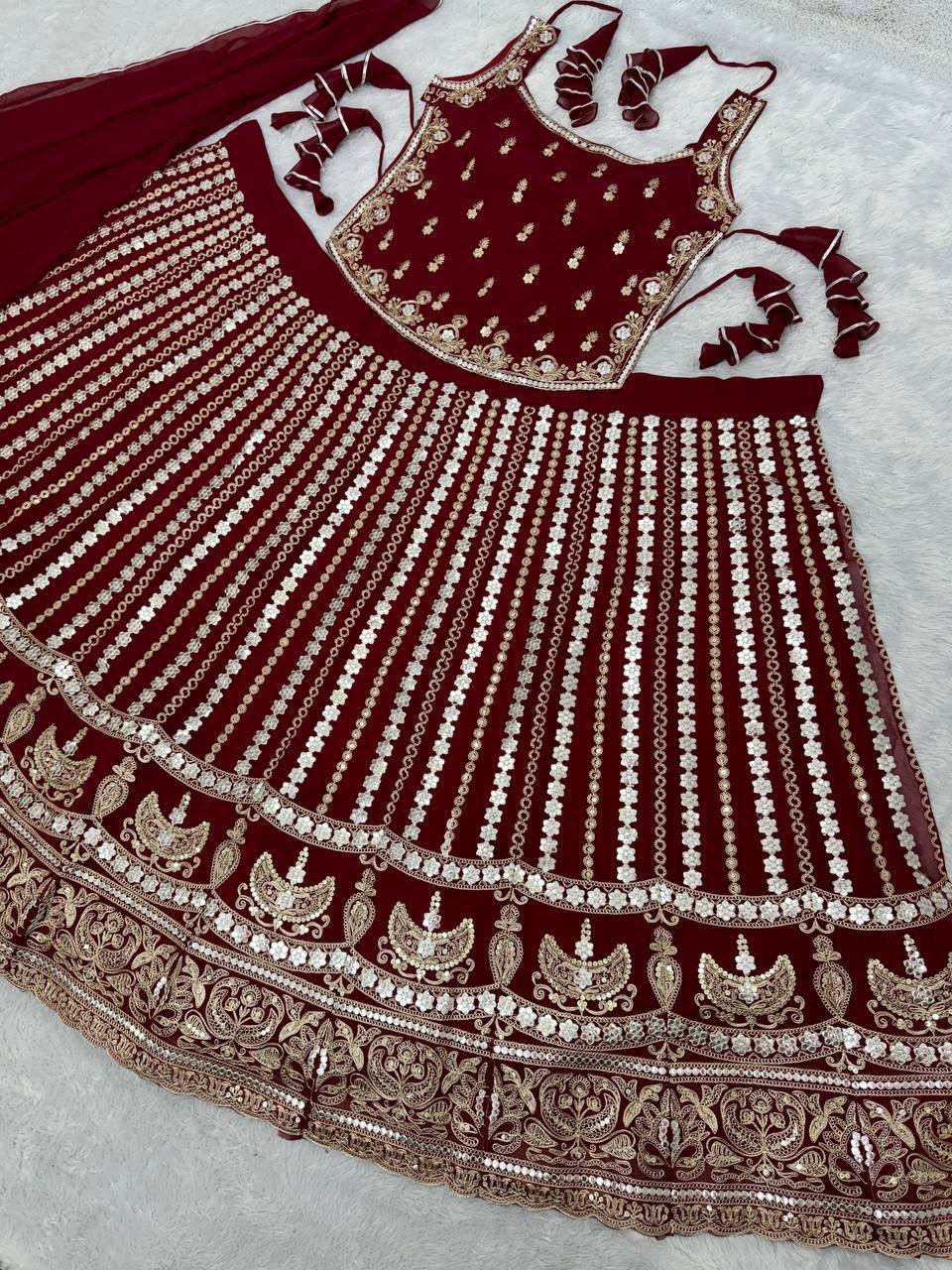 BRIDAL WEAR in EMBROIDERED SEQUENCE & PAPER MIRROR WORK LEHENGAS CHOLI WITH DUPATTA Set