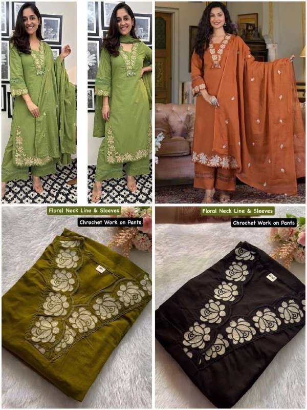 COMFORTABLE SUIT IN RAYON SLUB COTTON, TOP PANT WITH DUPATTA PAIR (4 Colors)
