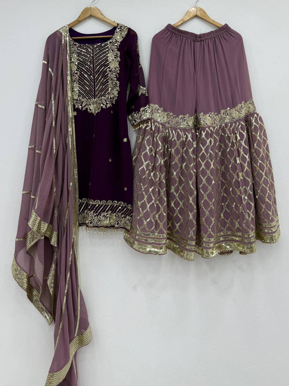 Designer Embroidered Top Sharara & Dupatta Set (2 Colors)
