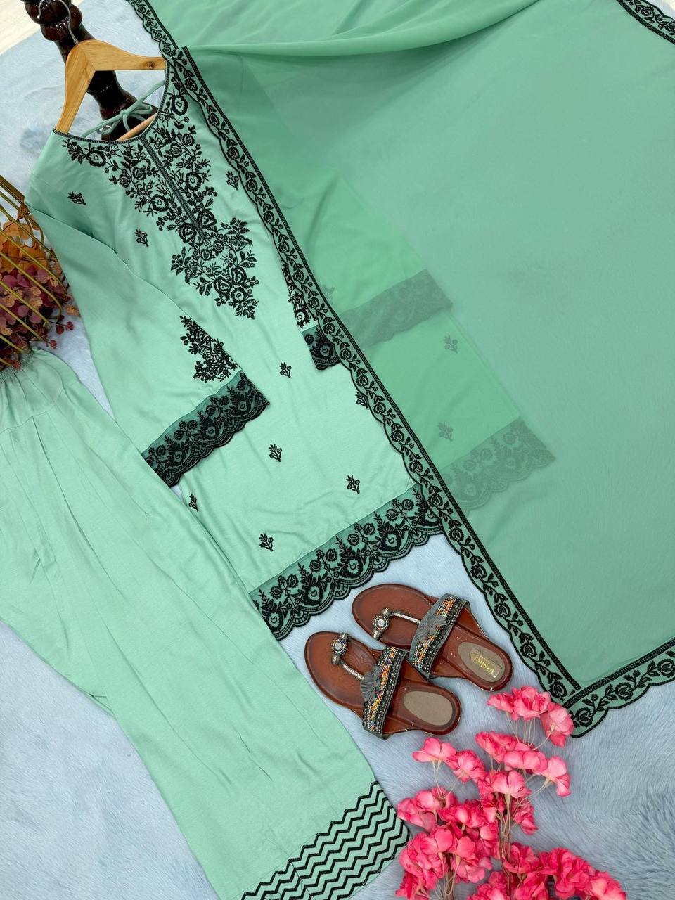 *Dupatta Fabric*:Heavy Foux Georgette With Four Side Embroidery Work Lace Border With Cutwork