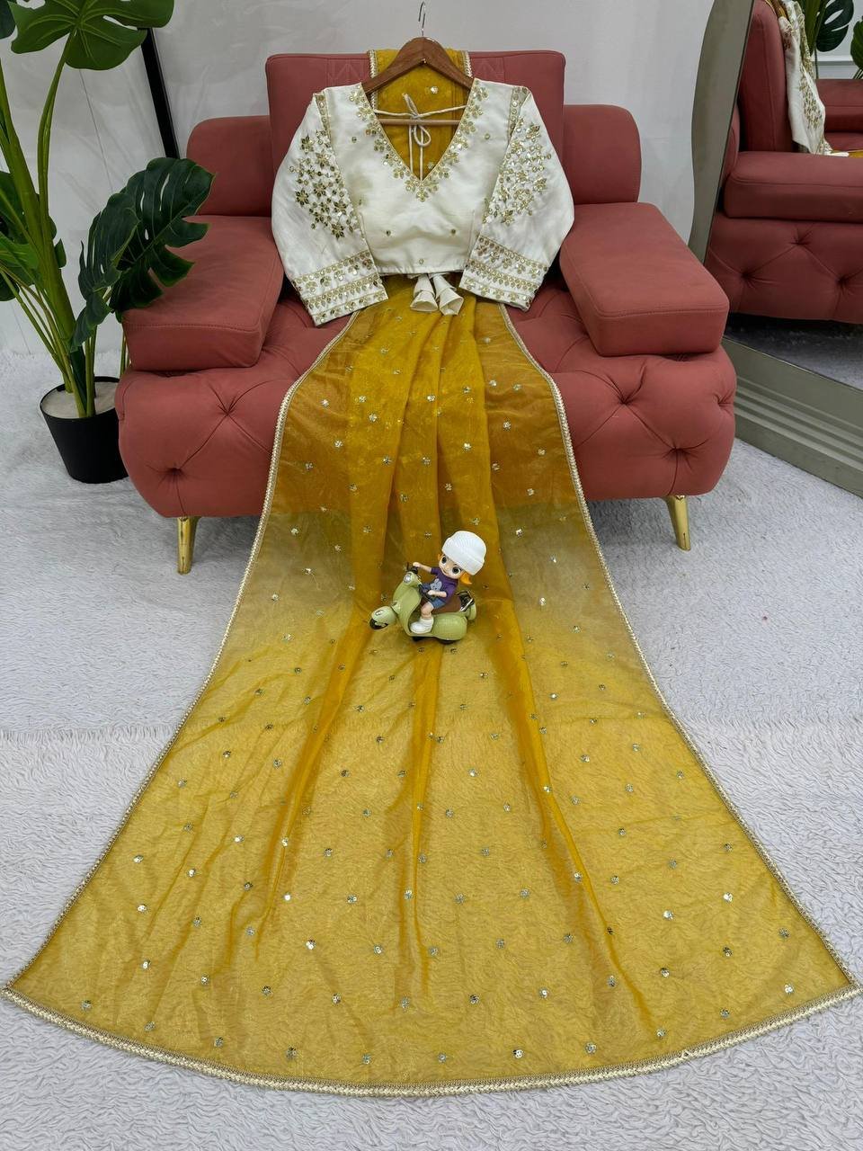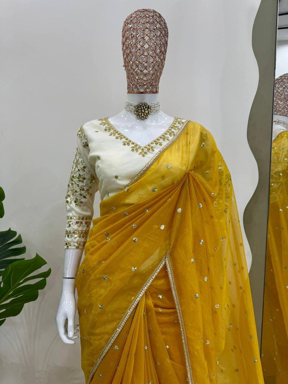Designer Saree on Twill Net with Thred & Sequence with Readymade Blouse (2 Colours)