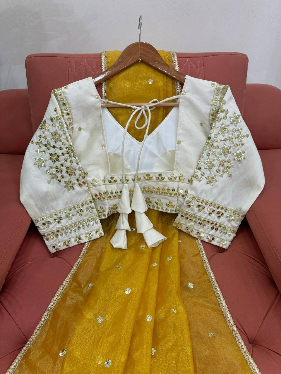 Plain And Gamthi Patch Work With Gota Patti Touch Lehenga Set (Fully Stitched)