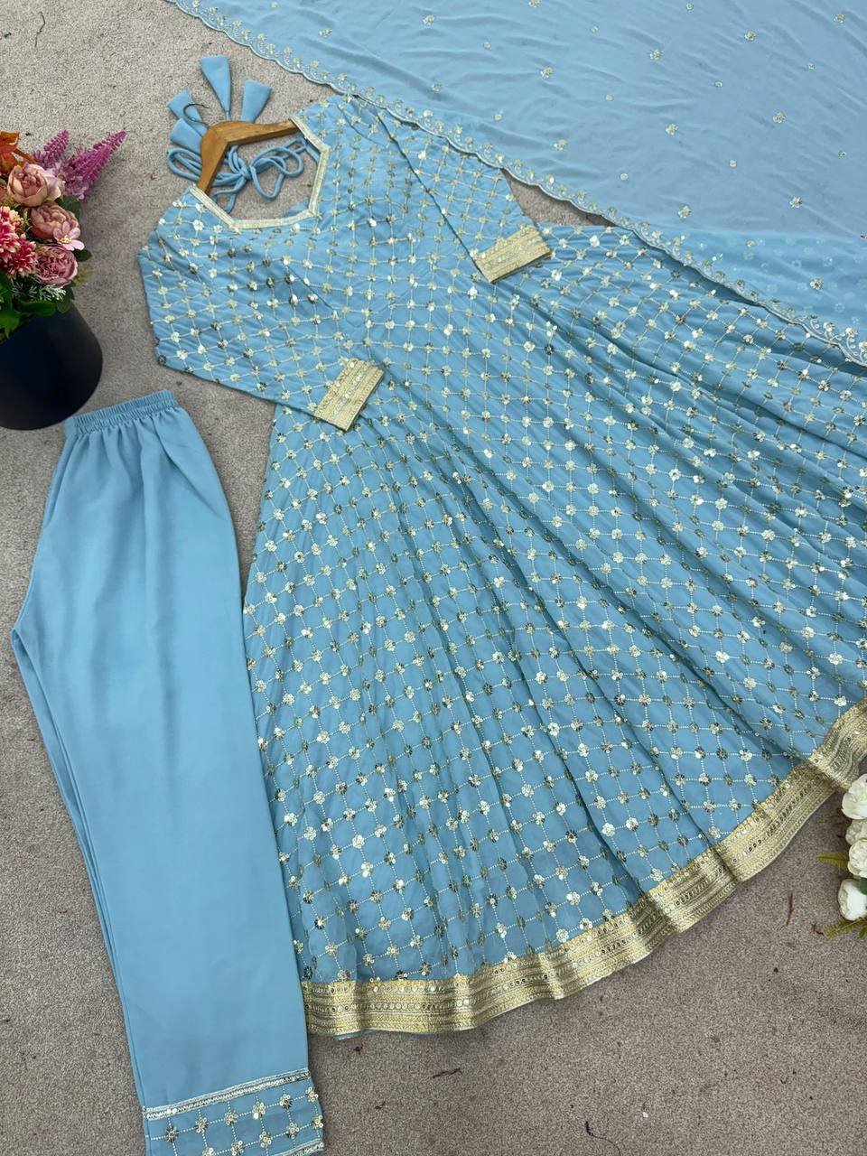 * Fabric: Heavy Georgette With Embroidery Sequence Work