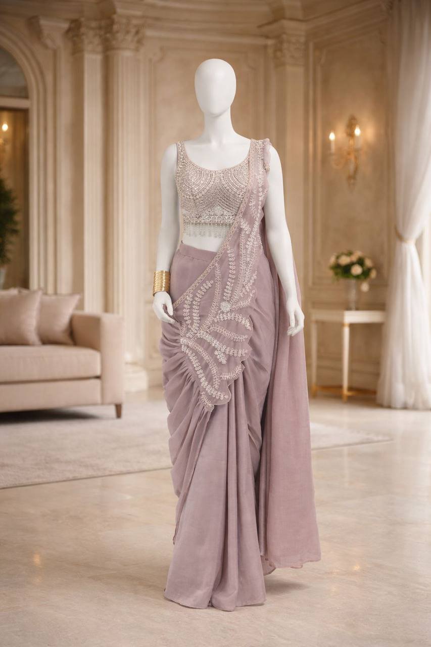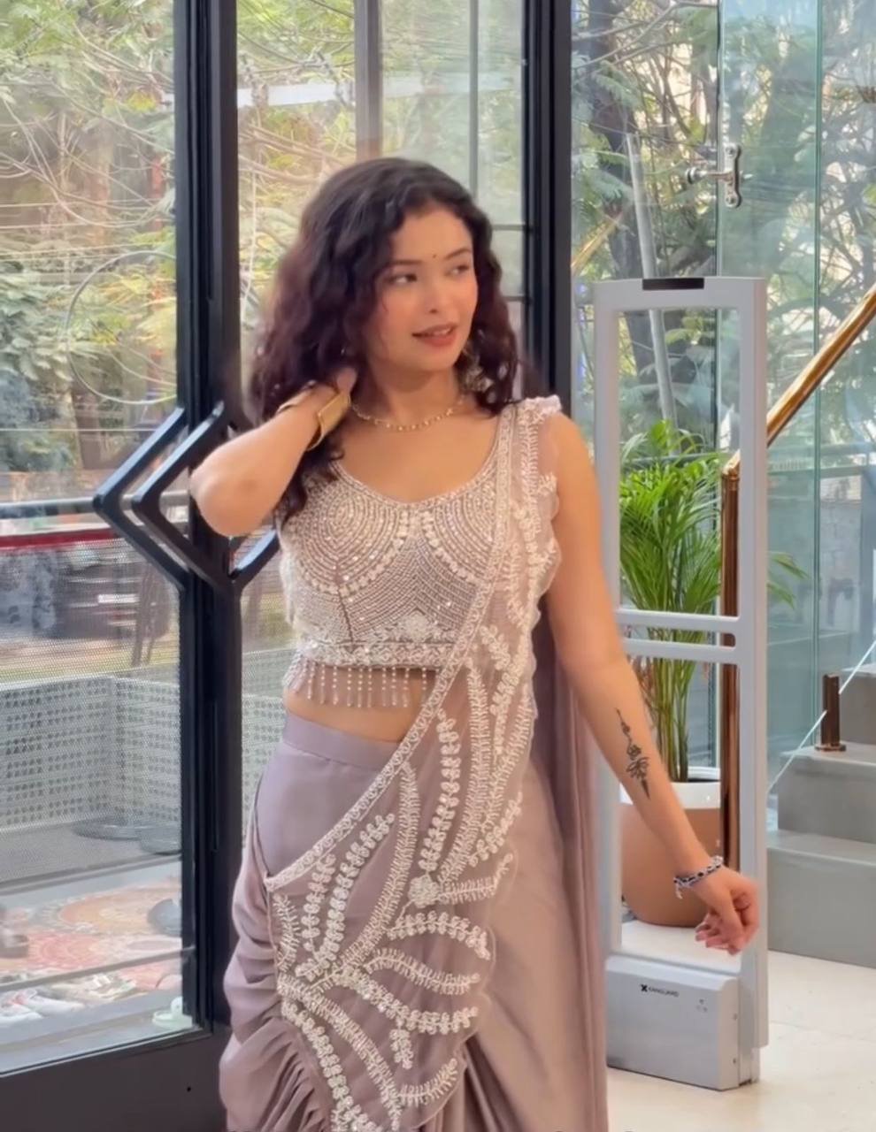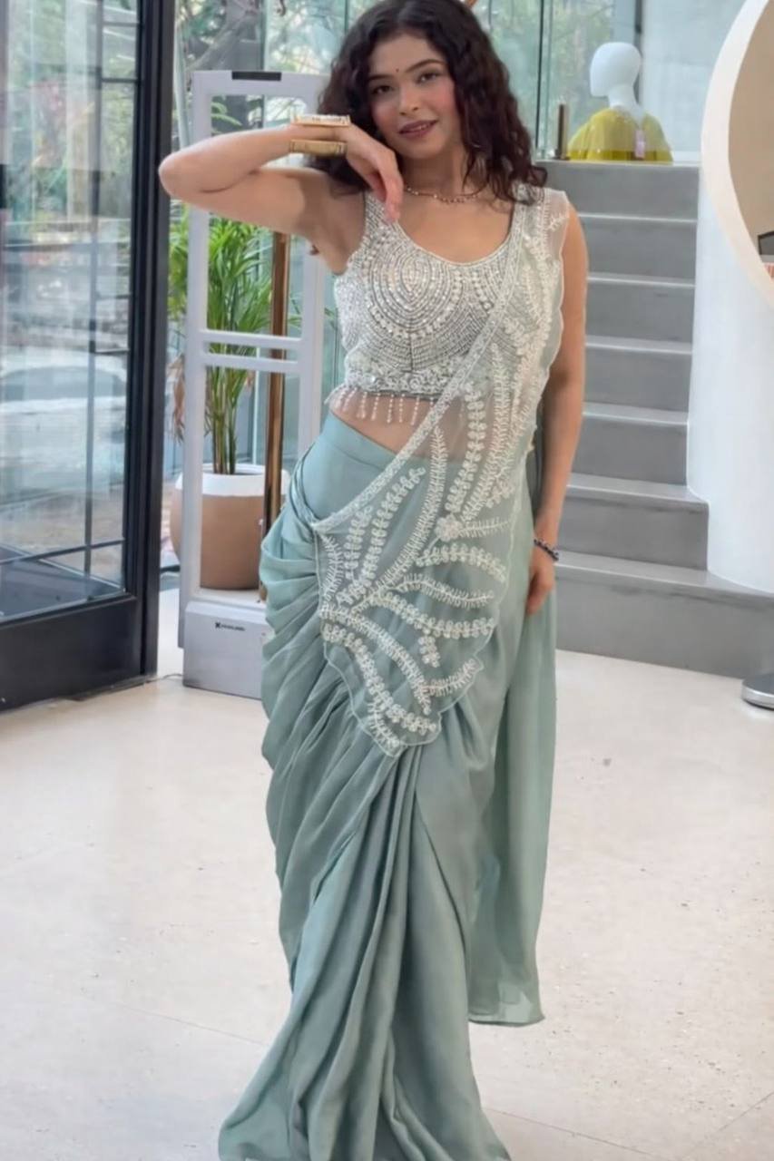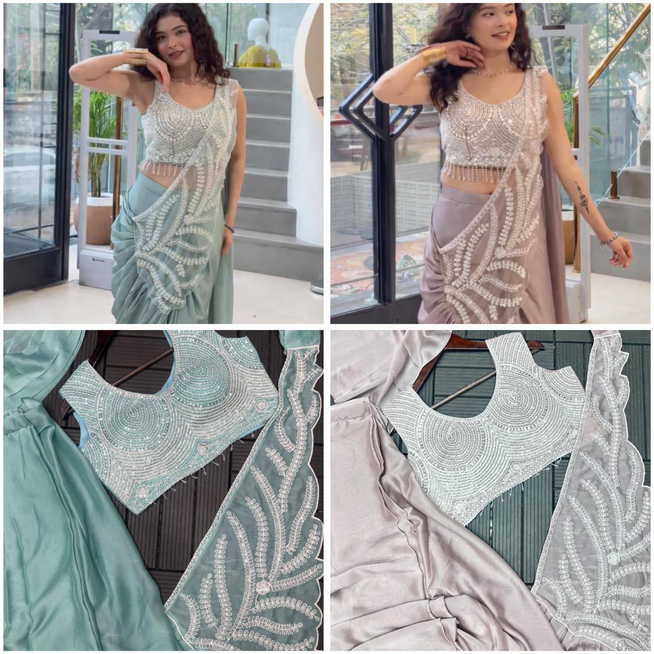 Embroidery Sequence work ready to wear saree with Readymade Blouse
