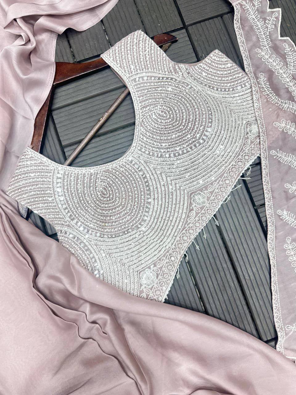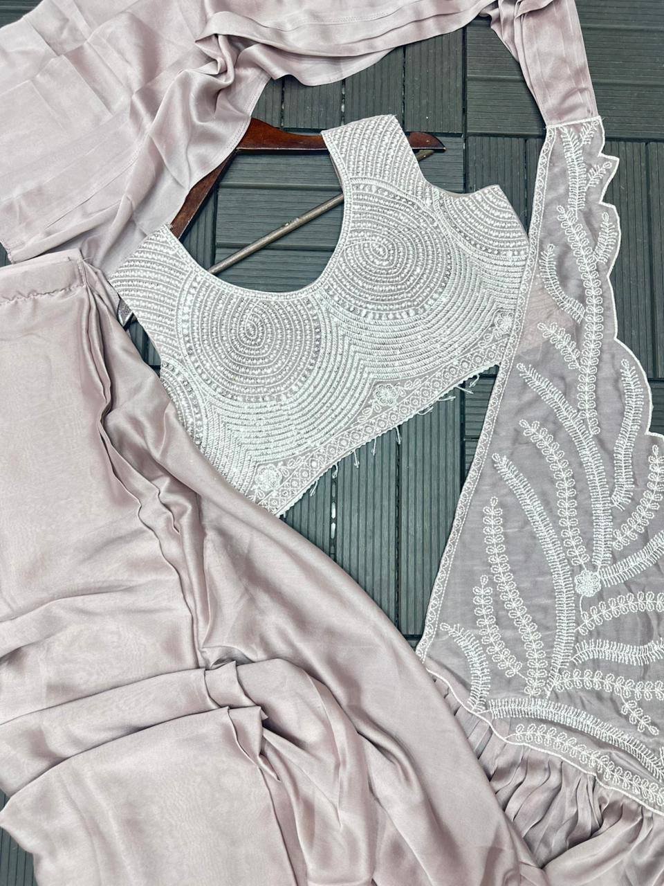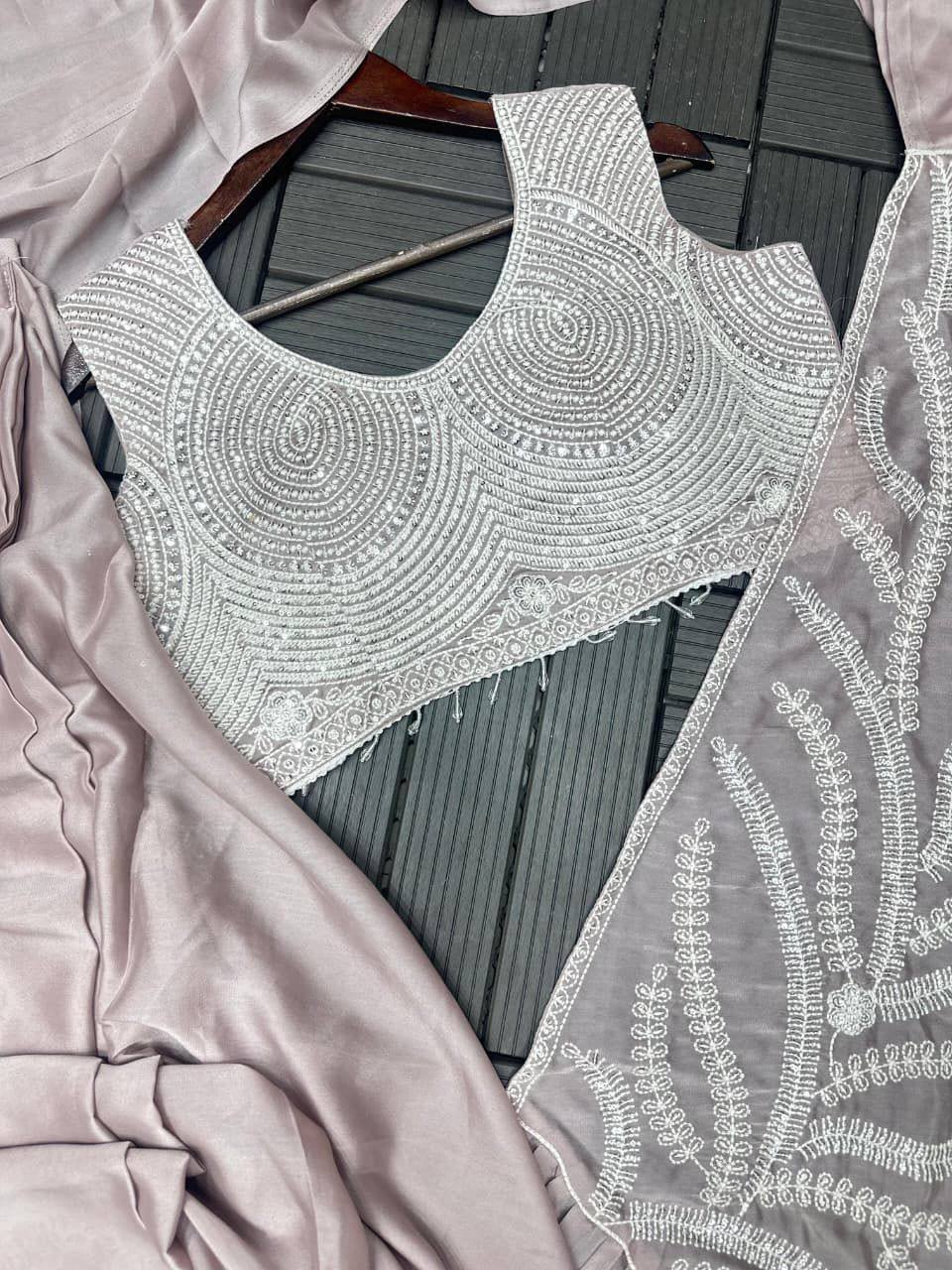 Embroidery Sequence work ready to wear saree with Readymade Blouse