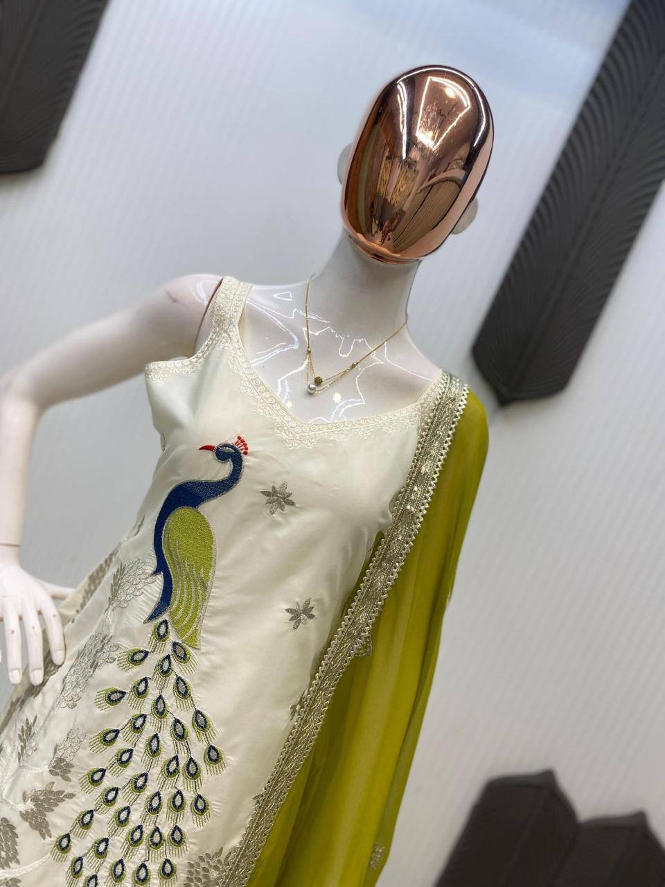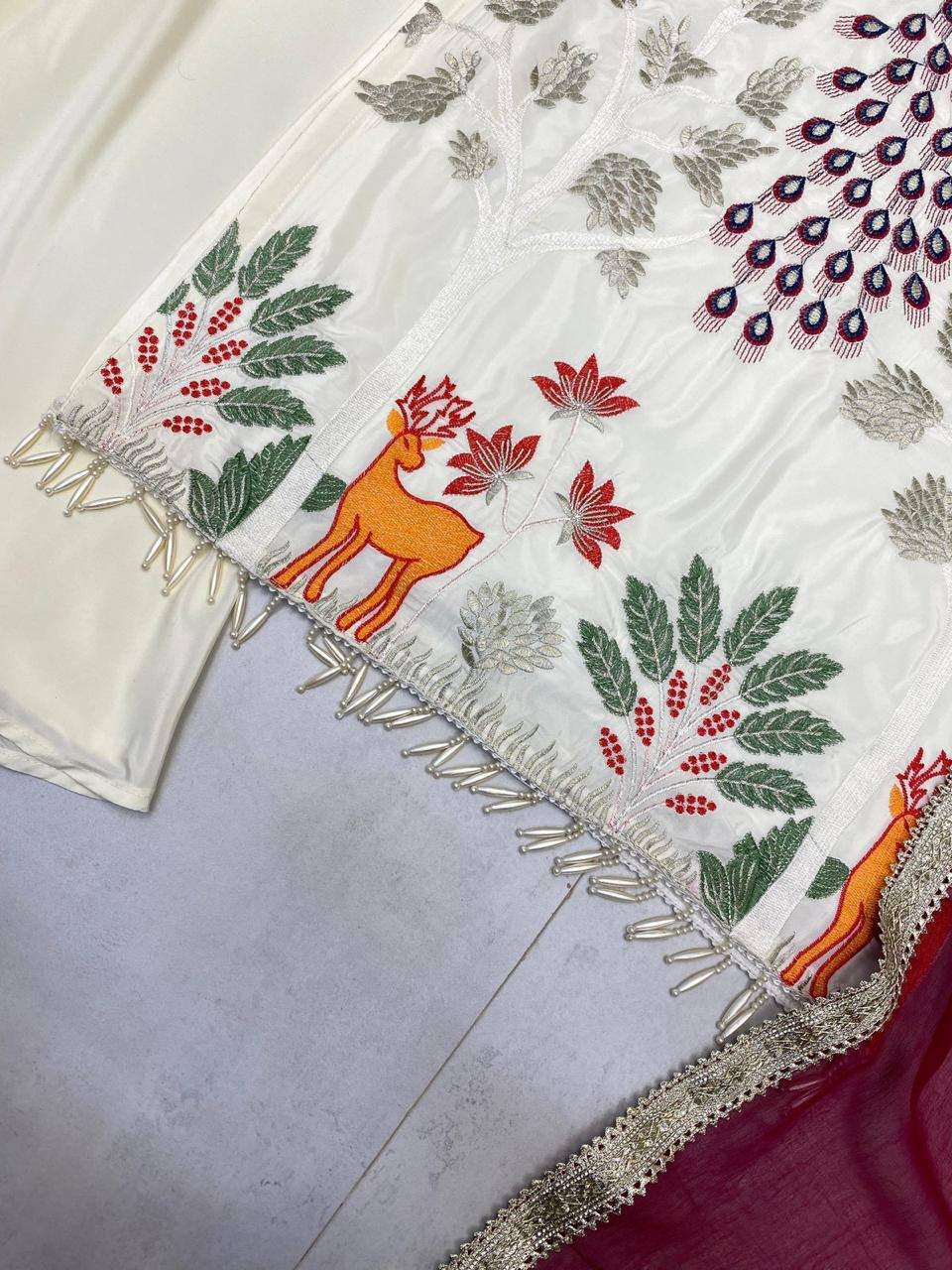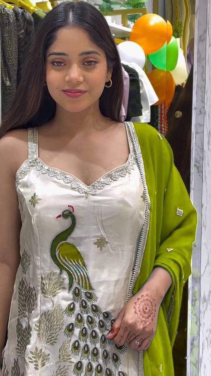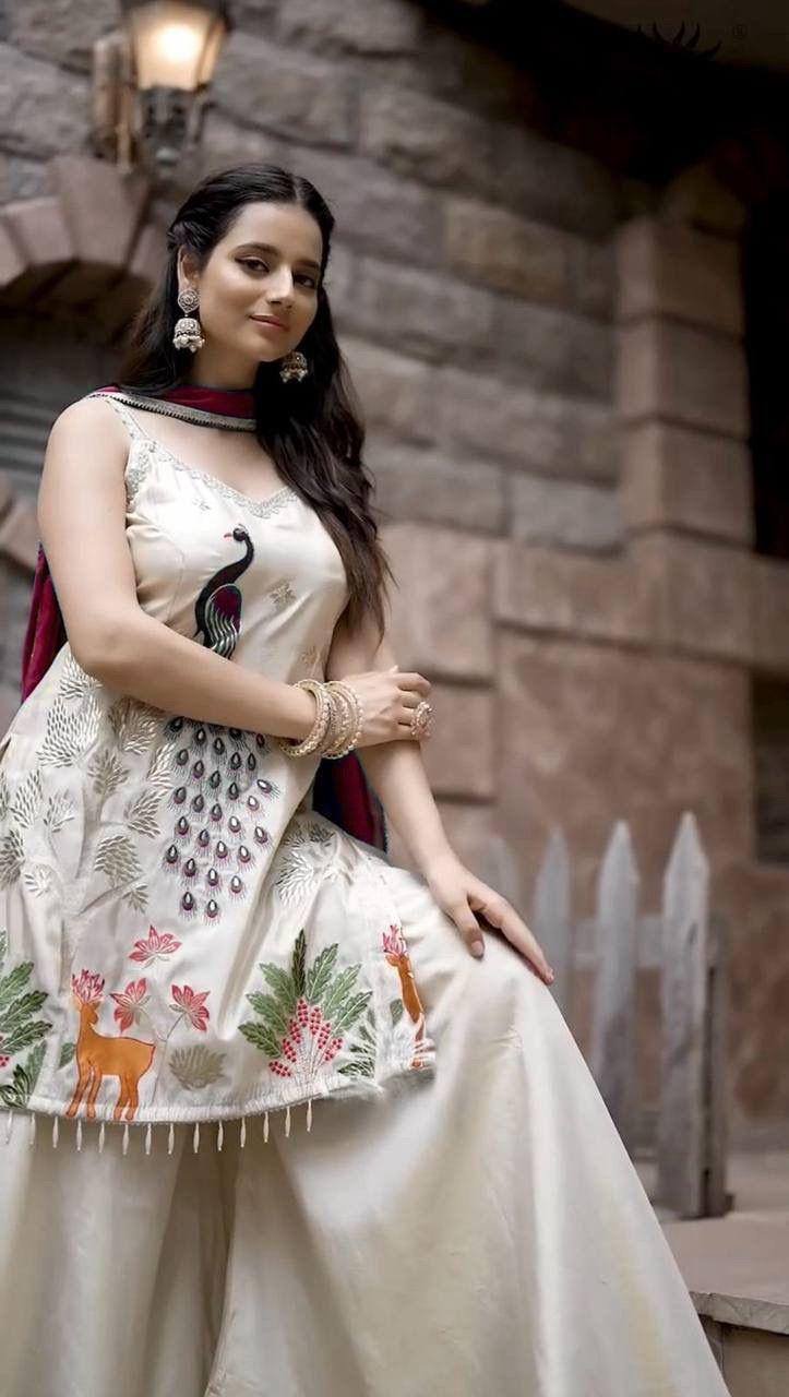 EXCLUSIVE PLAZZO PAIR WITH EMBROIDERED PEACOCK Design (3 COLOUR)