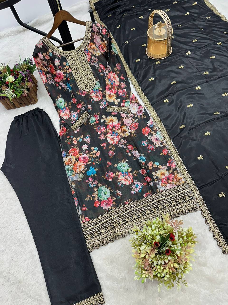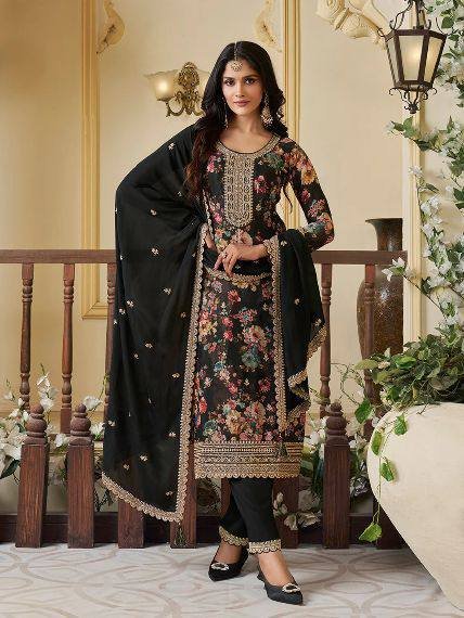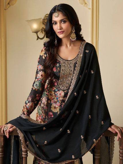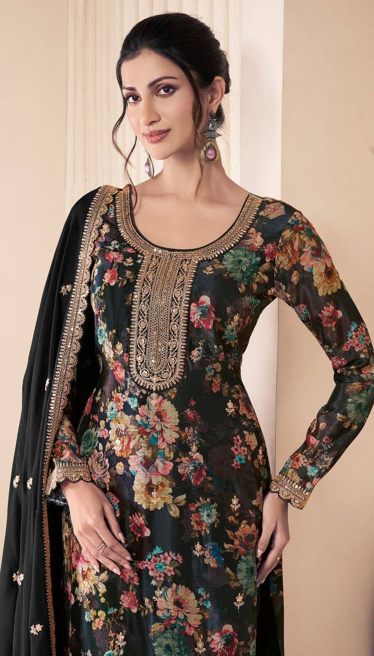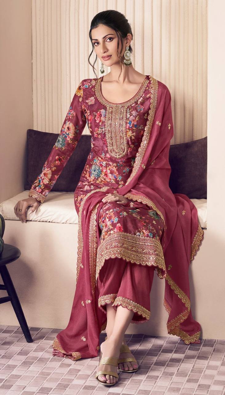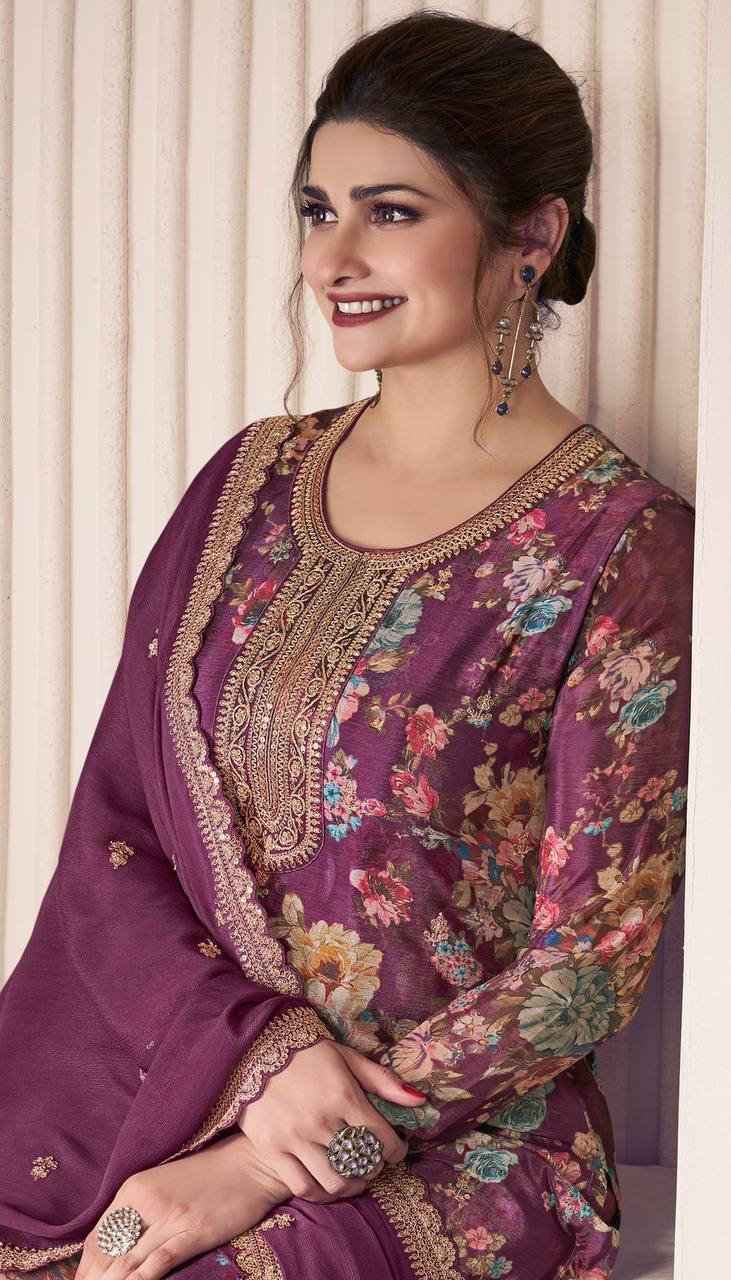 👉*WORK* :- beautiful digital print with Embroidery sequence coding work (Both Side Work)