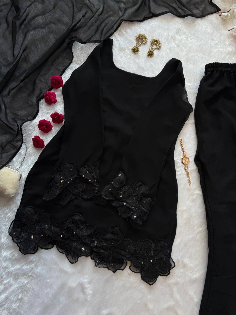 *Top* – faux georgette embroidery ,sequence patch work straight cut fully stitched kurta 🌸