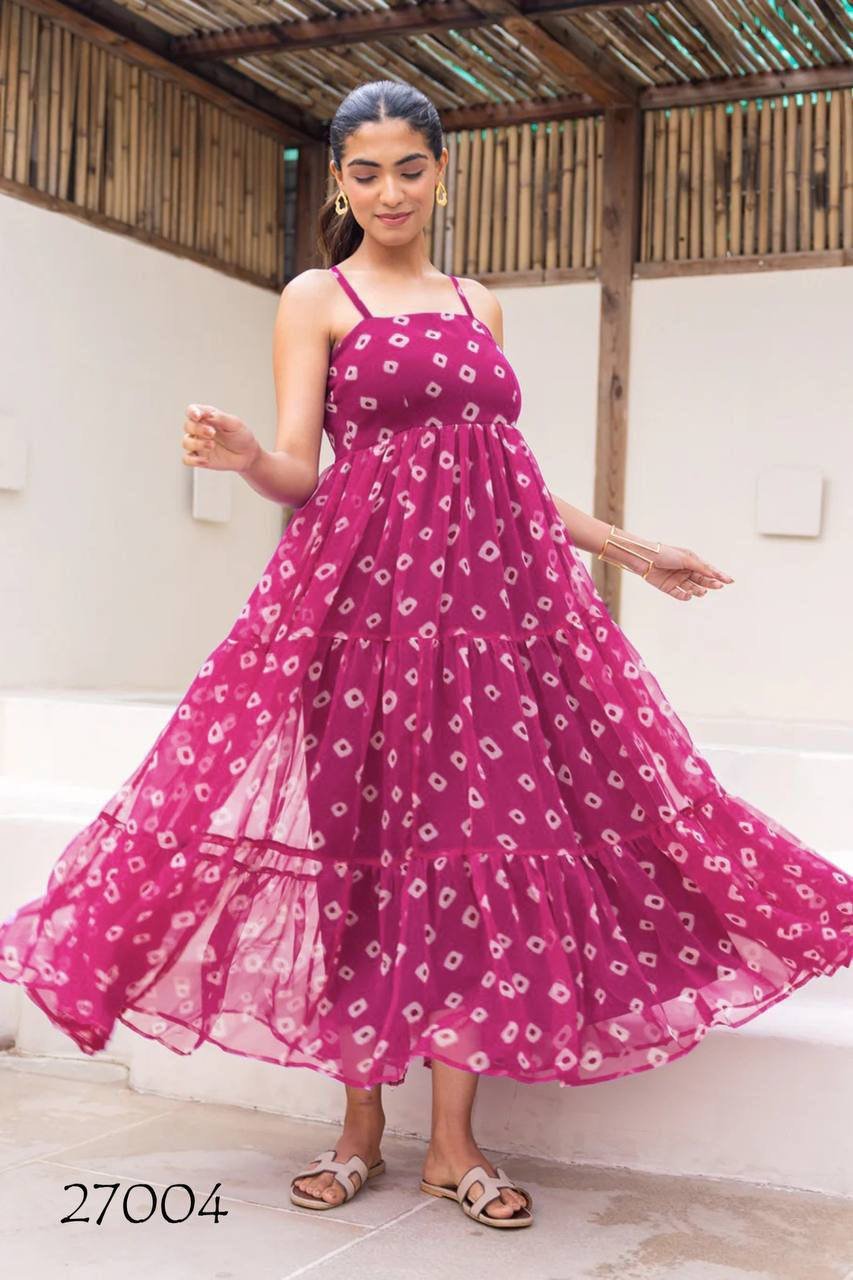 Heavy GEORGETTE With Digital Printed Work Women Dresess (Strap Dresses)