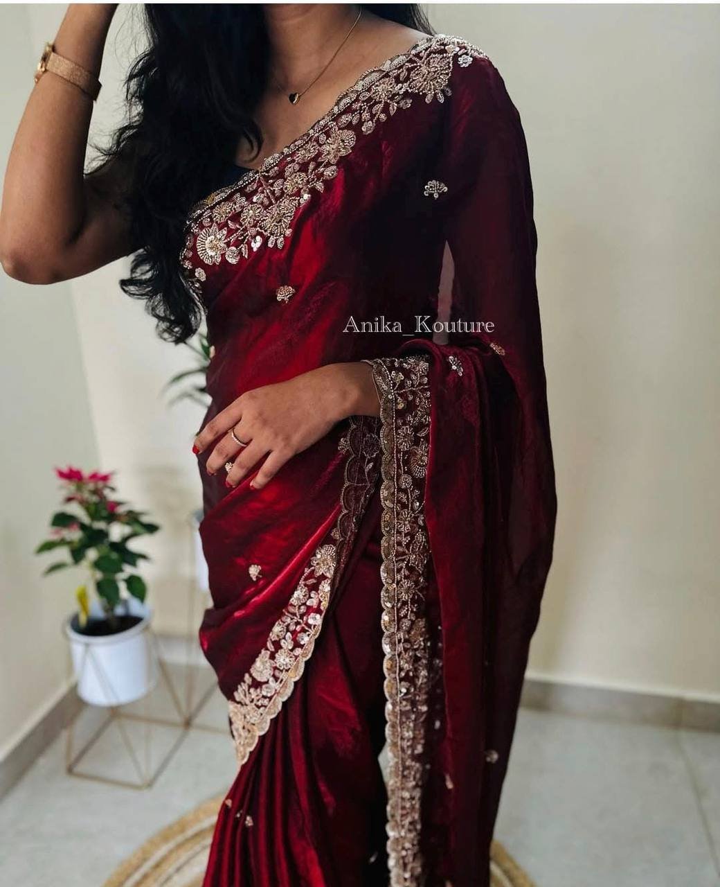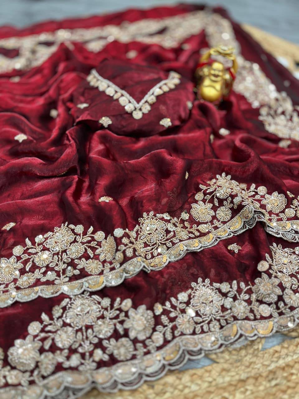 *On pure space silk sarees in velvet shine adorned with sequence and cutdana delicate handwork*