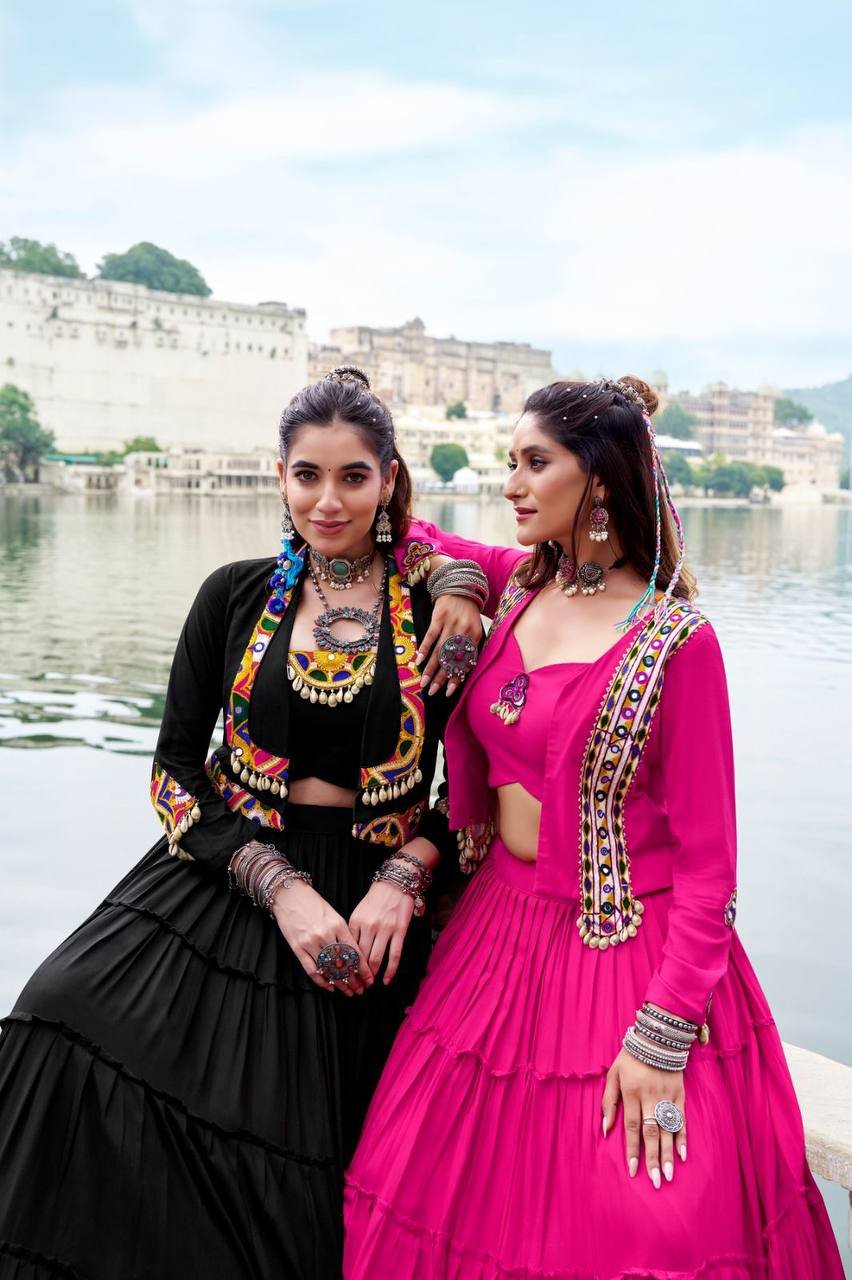 Navratri Lehengas in Original Mirror Gamthi Work With Cowrie (kodi) Lace (5 colors)