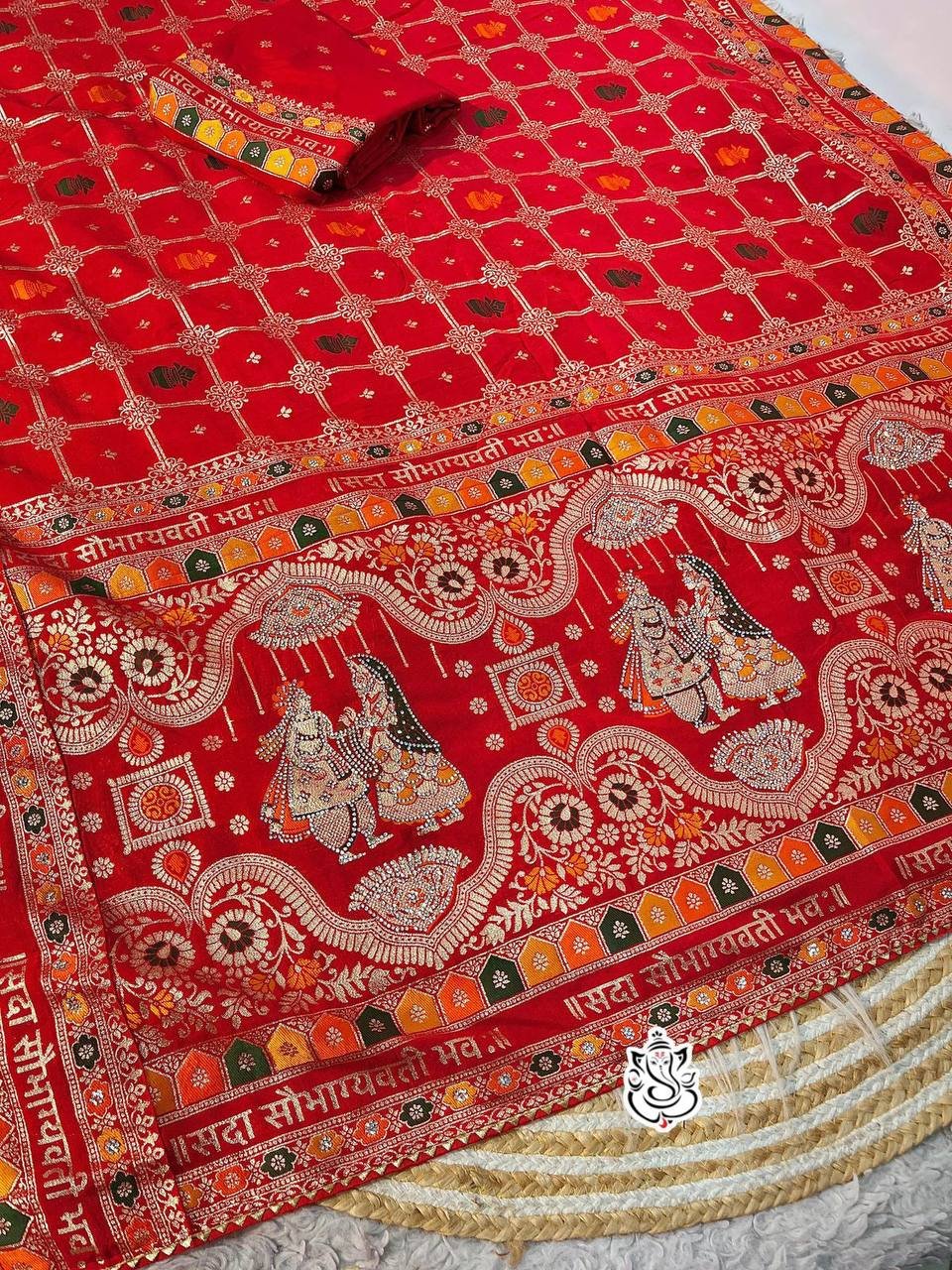 *Discover the enchanting of Sada Saubhagyavati Bhava saree with beautiful dola silk weaving meena with rich pallu zarkhan work with running blouses