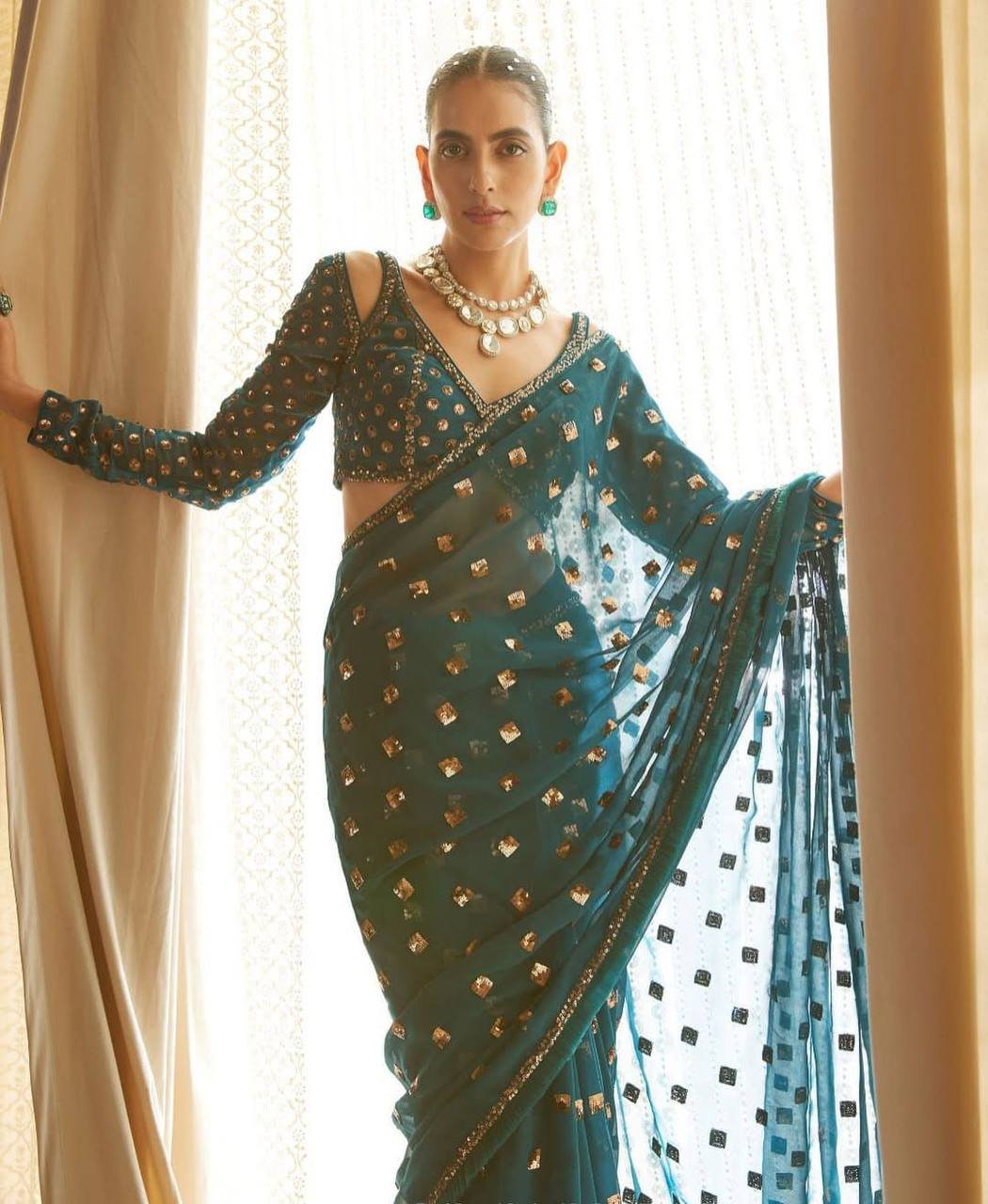 Heavy 5mm Sequence Embroidery box work done in saree