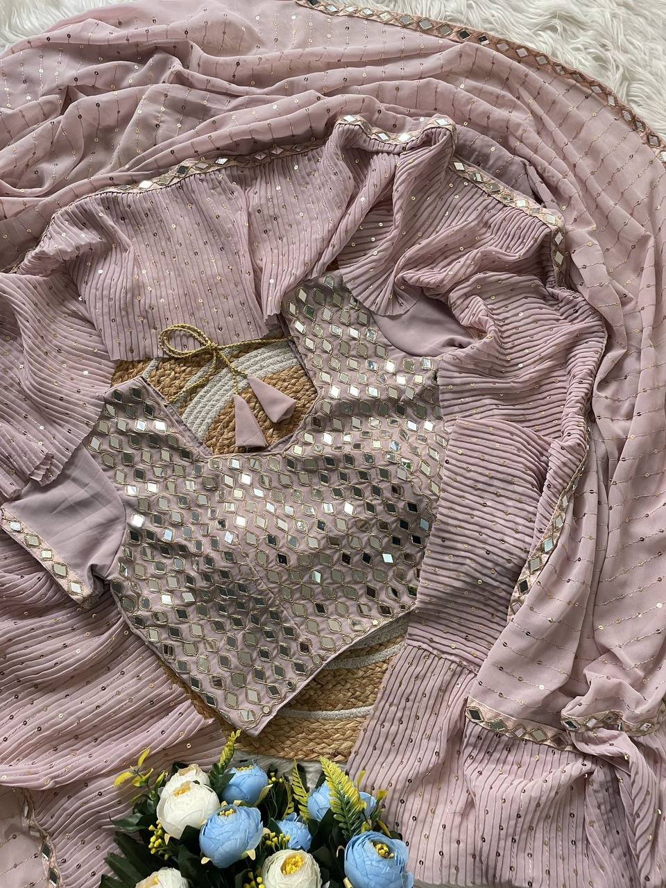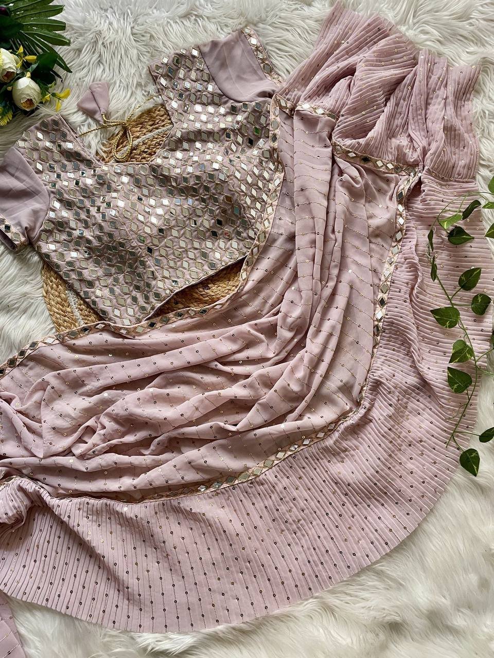NEW BOLLYWOOD DESIGN LAUNCHING SEQUINS CRUSH PLEATED SAREE WITH READYMADE BLOUSE