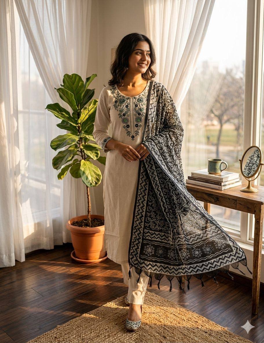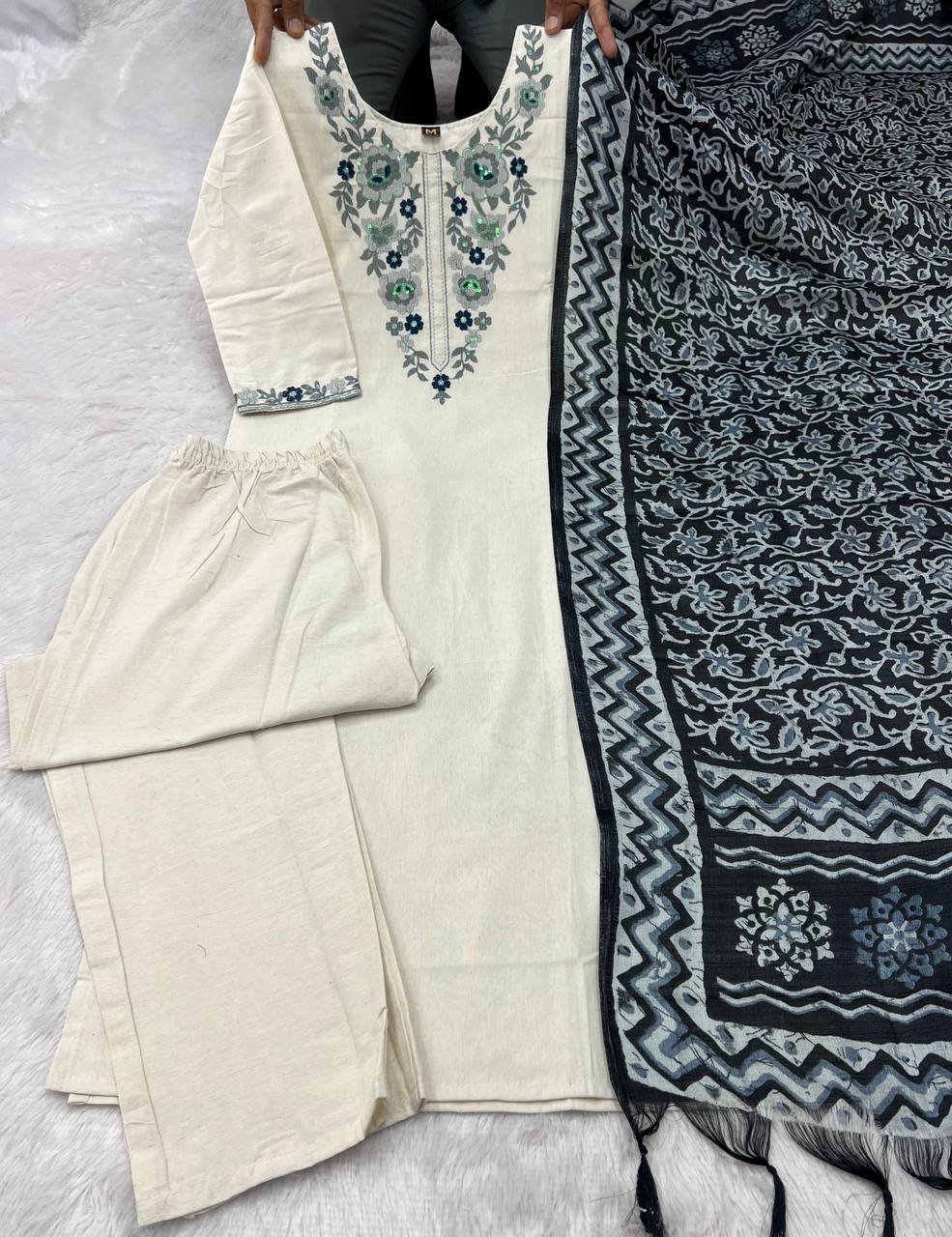 Be the first to review “New Designer Khadi Cotton with Embroidery Suit Set”
