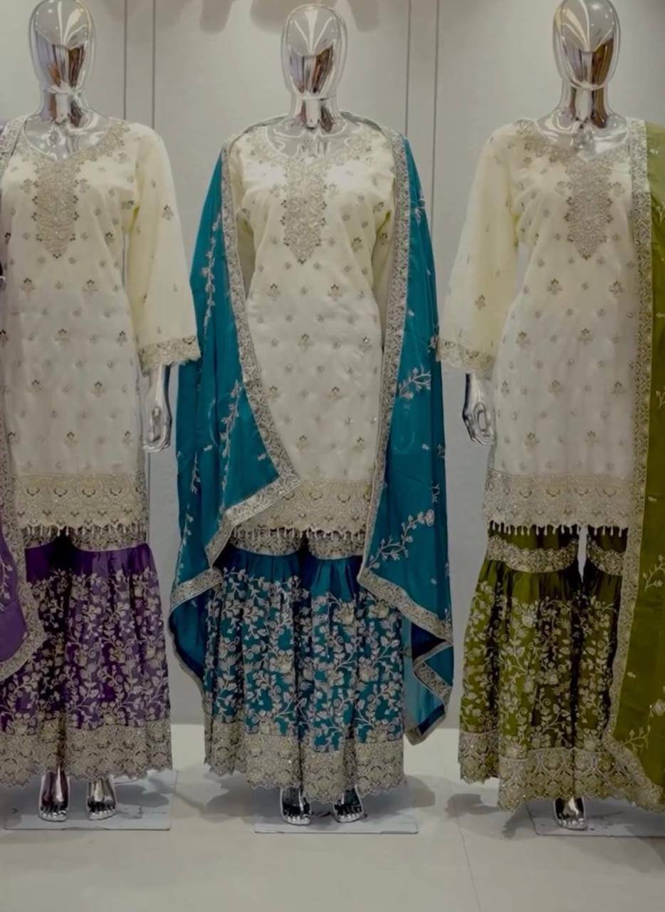 NEW PAKISTANI COLLECTION WITH EMBROIDERY SEQUENSE WORK TOP-SHARARA WITH DUPATTA Set