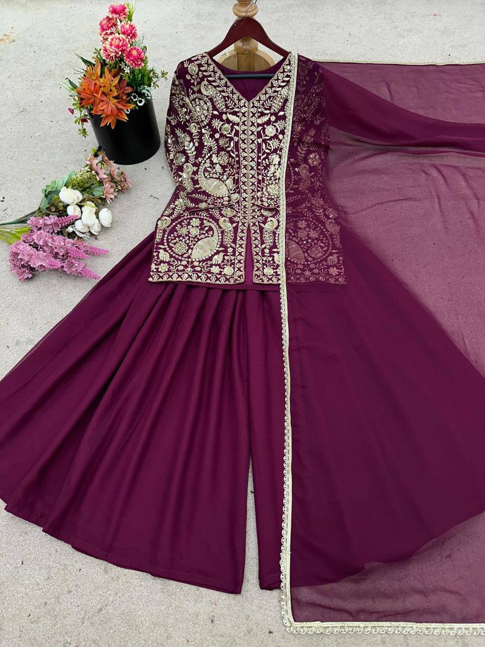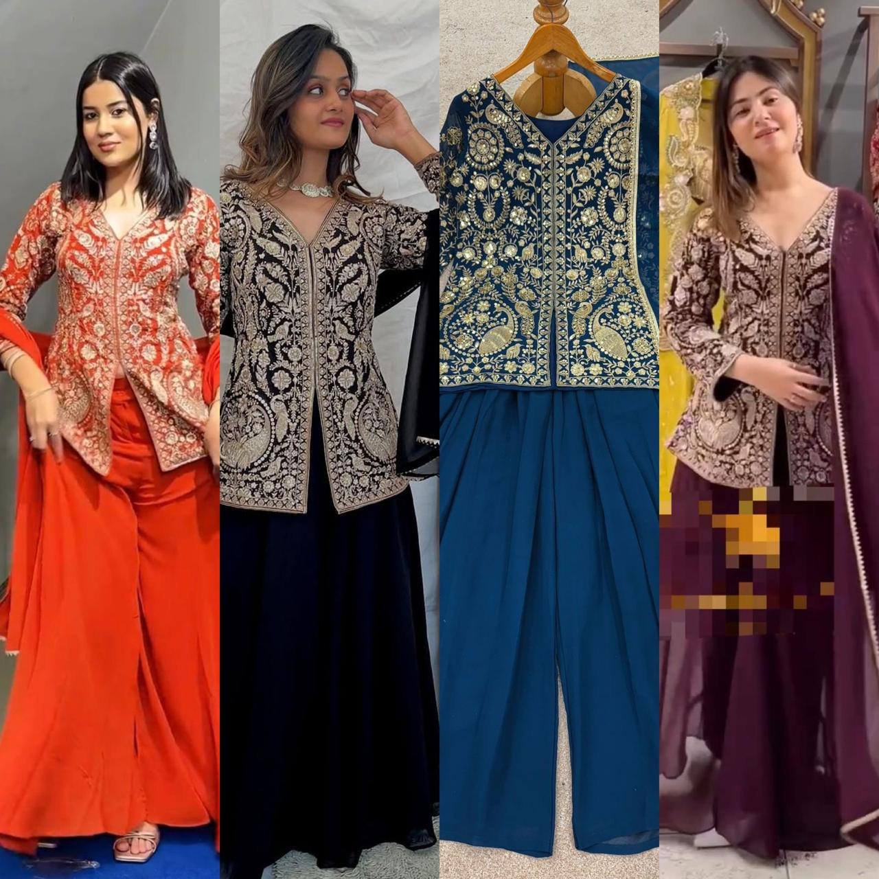 New Party Wear Look in Heavy Georgette Top Plazzo & Dupatta Set (4 Colors)