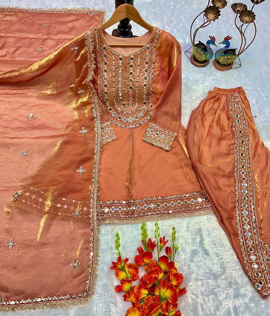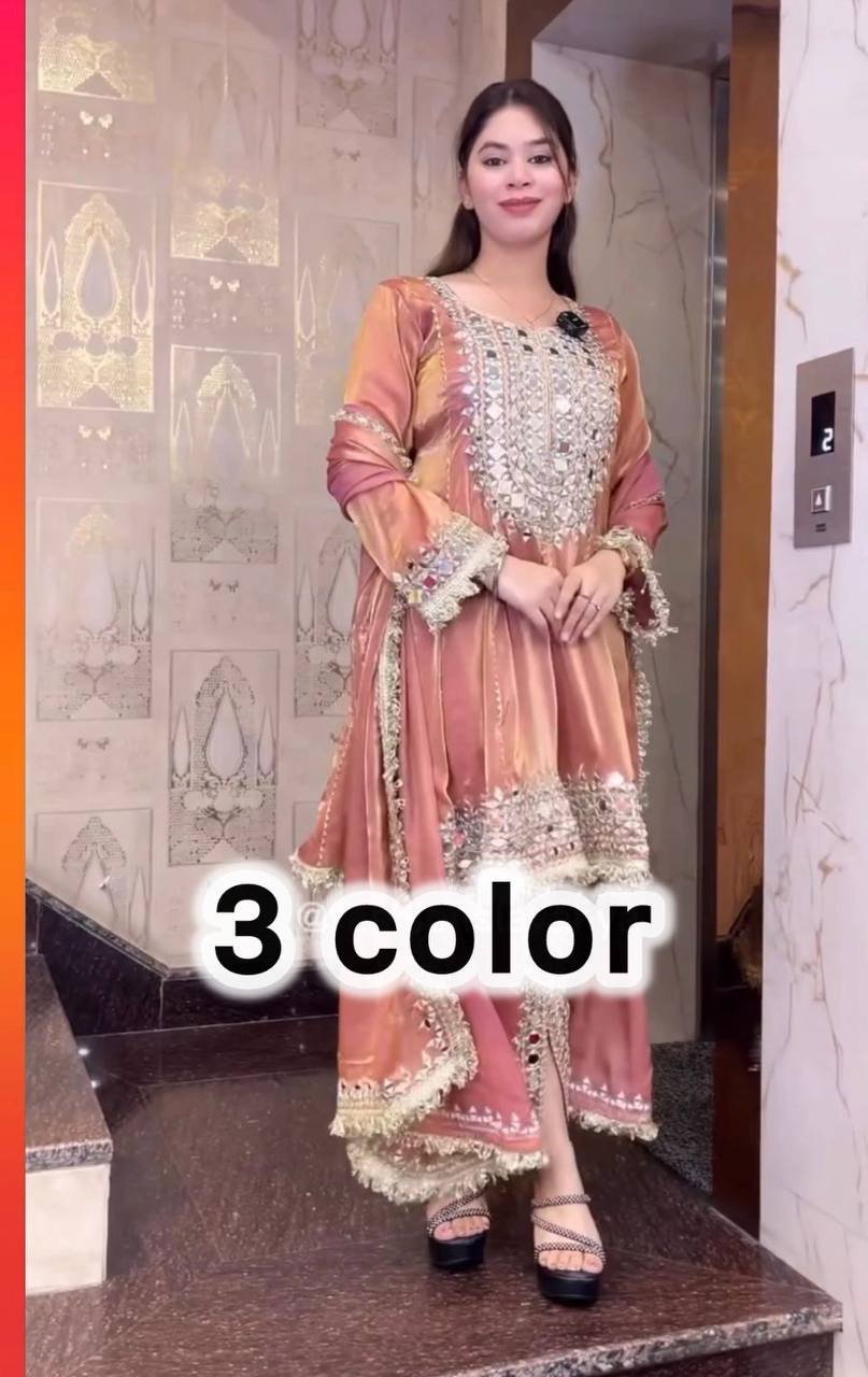 👗 *TOP FABRIC* :HAVY FRANDY SILK WITH EMBROIDERY WORK AND FULL SLEEVES AND REAL MIRROR WORK