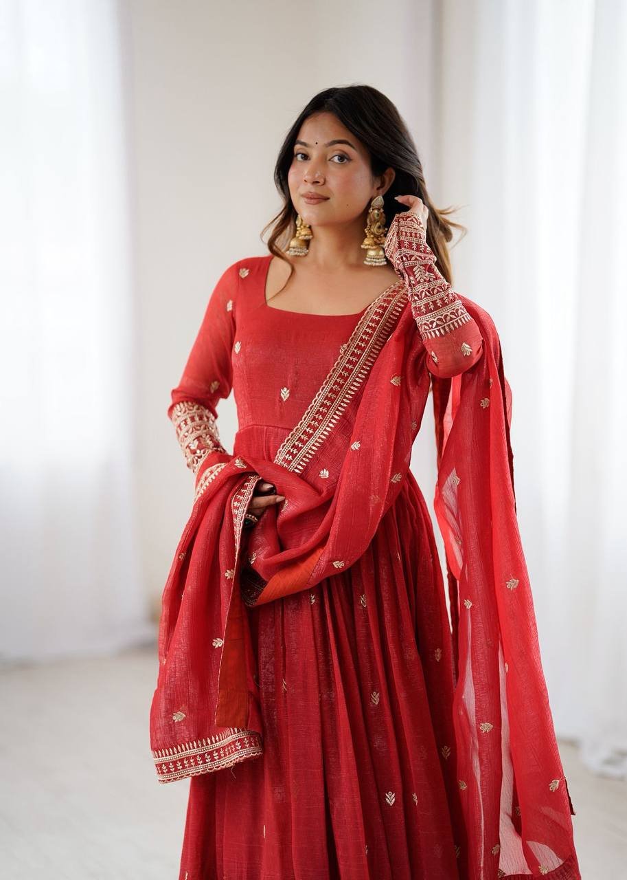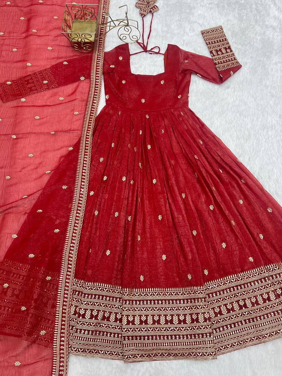 PREMIUM QUALITY PURE CRUNCHY SILK FABRIC FULLY FLAIR GOWN SET