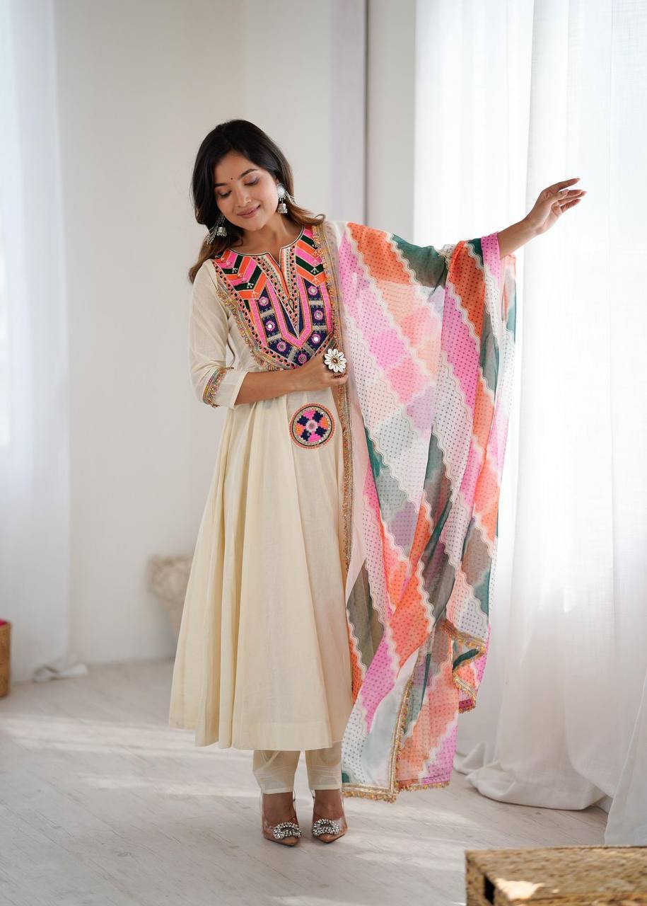 Premium Quality Ready To Wear Showroom Pure Cotton Anarkali Suit Set