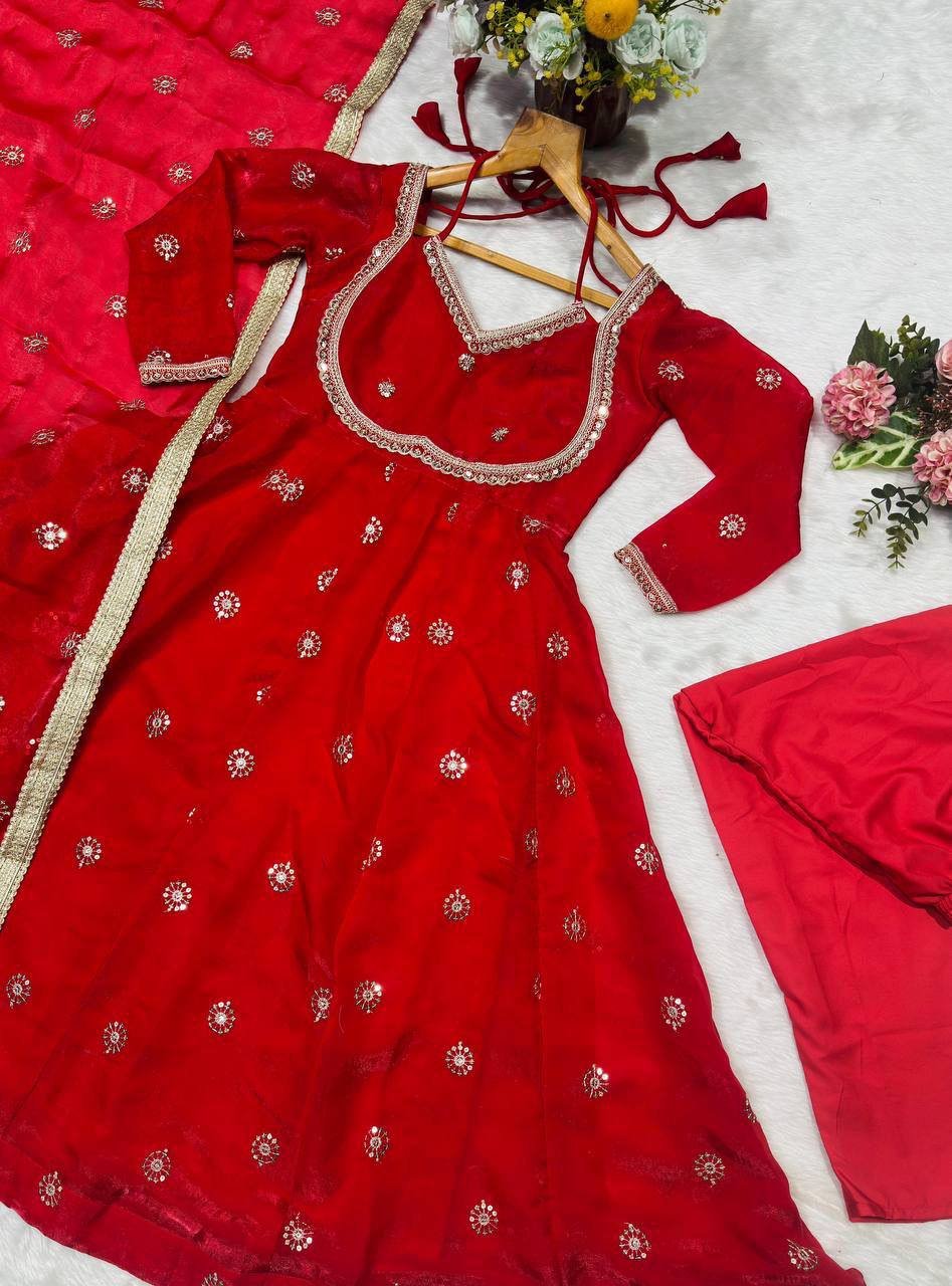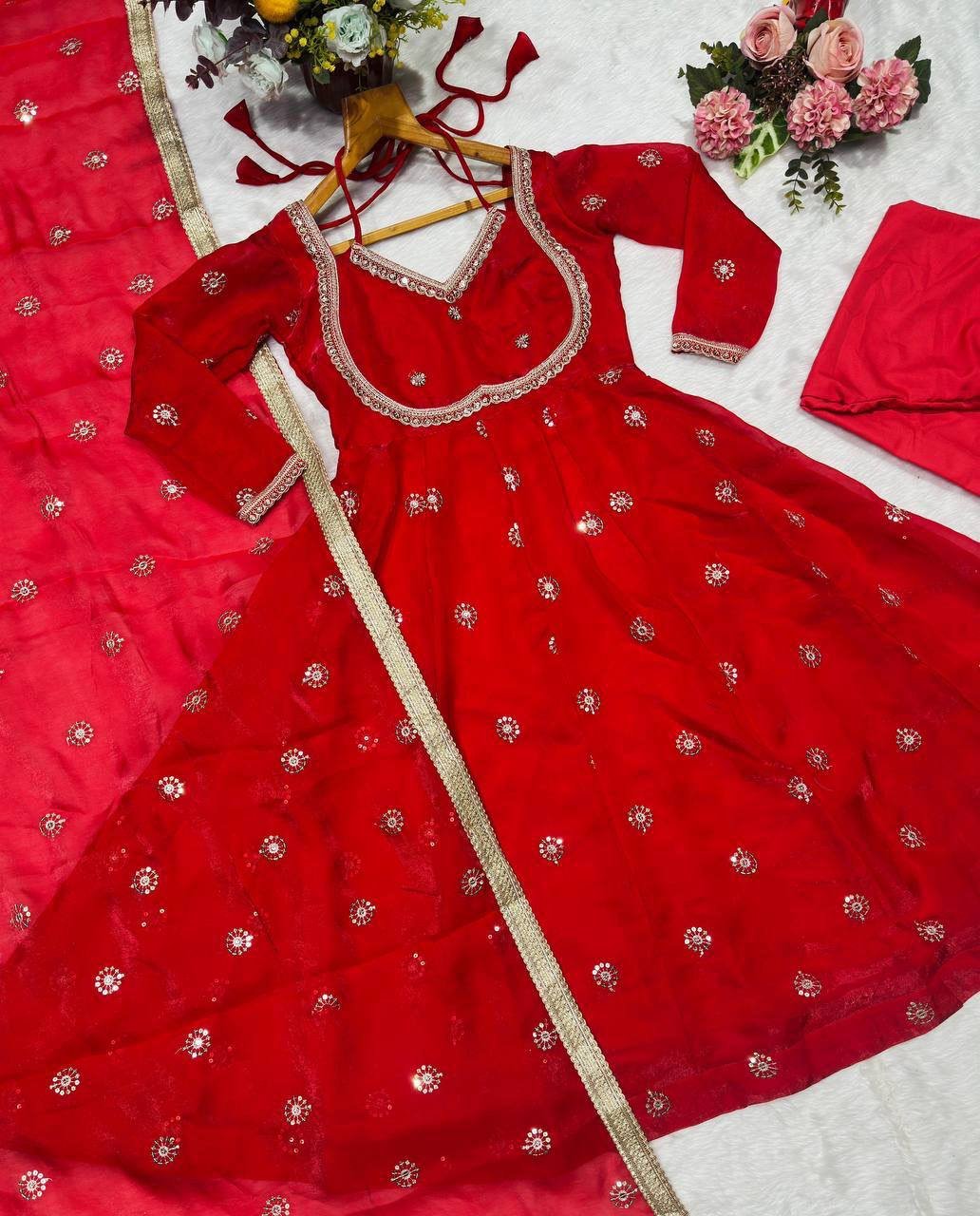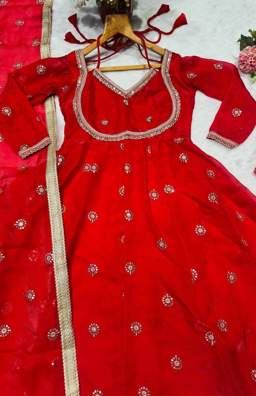 PREMIUM READYMADE Red ANARKALI SUIT With Designer Back