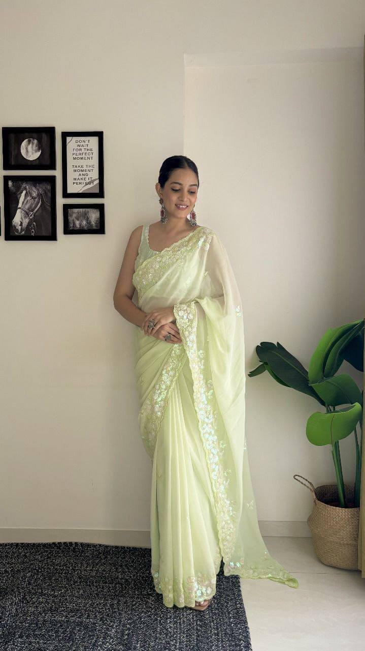 Presenting to you the most beautiful sequence saree with cut work border collection