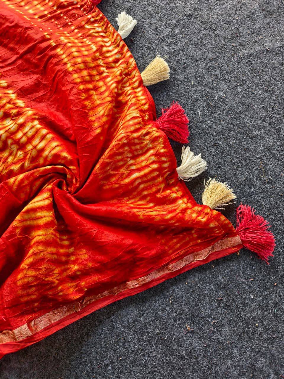 Pure Cotton Sarees with Hand Dyed Bandhej Design with Zari Border
