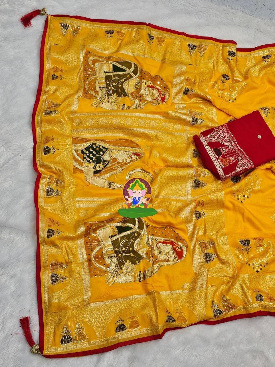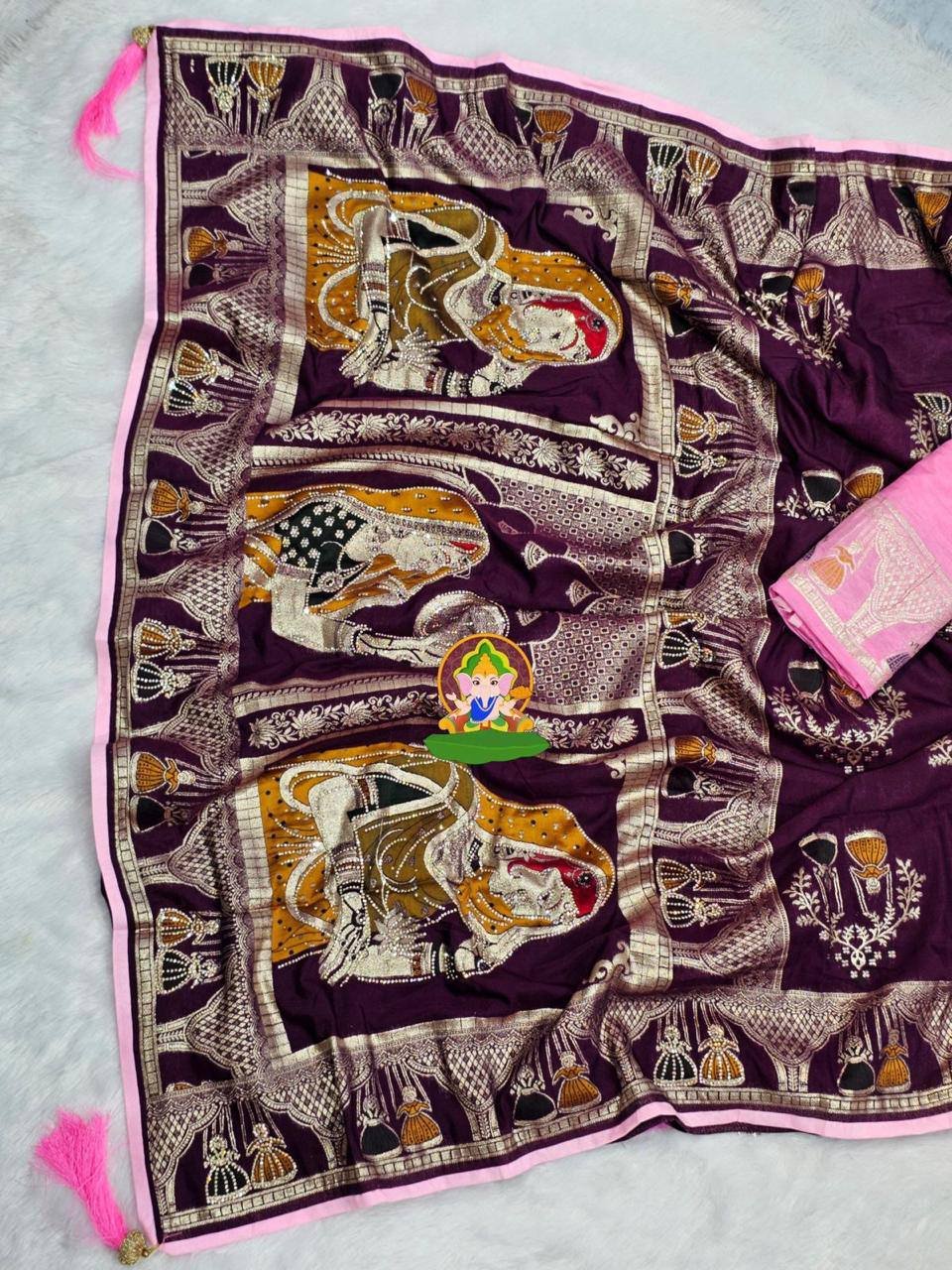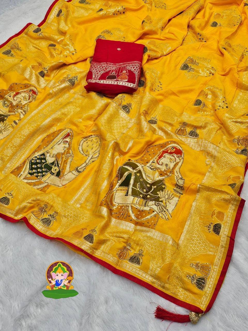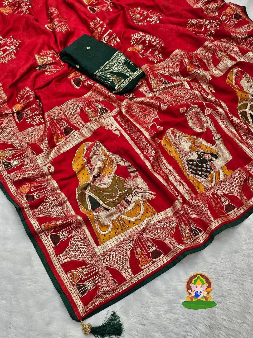 Pure Dola Viscose Meenakari Zecard Weaving Saree With Dulhan Design And Jarkan Diamonds