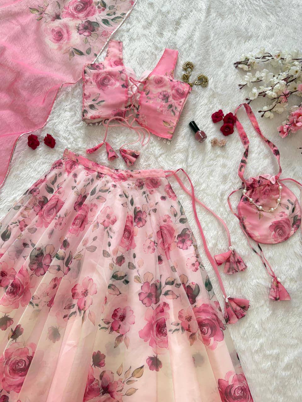 Pure organza silk and digitally Printed fully stitched Lehenga (4 Colors)