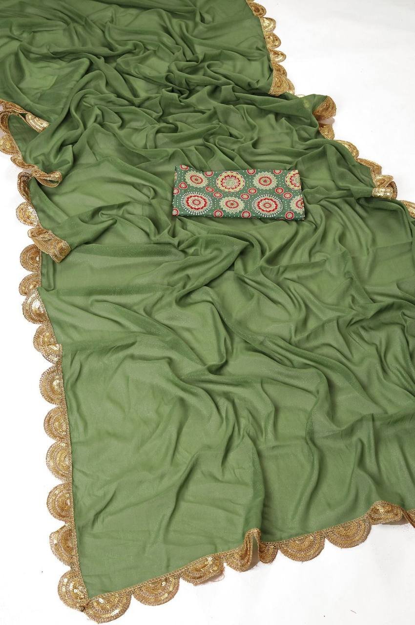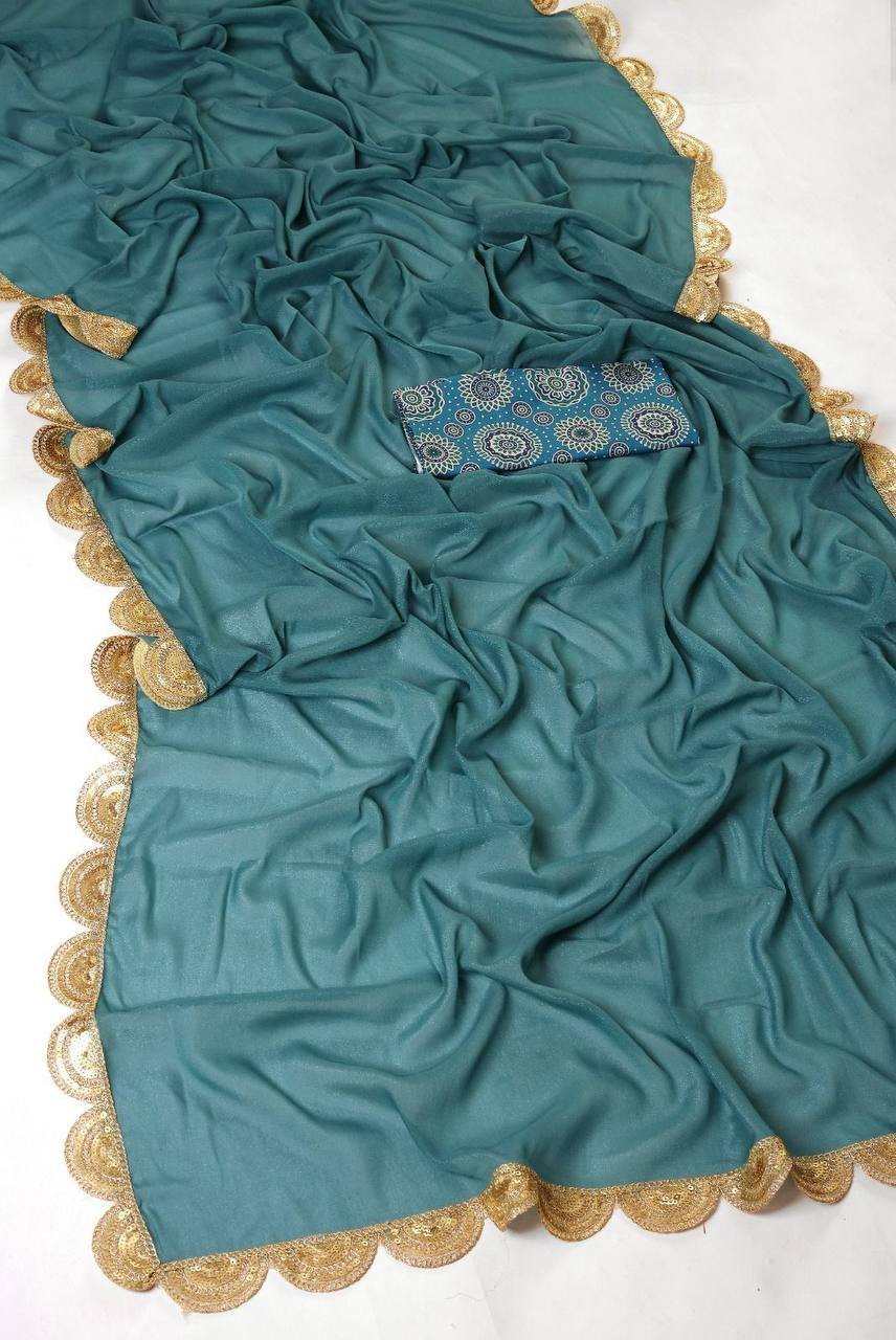 Pure Star Georgette fabric with sequence work cutwork lace border