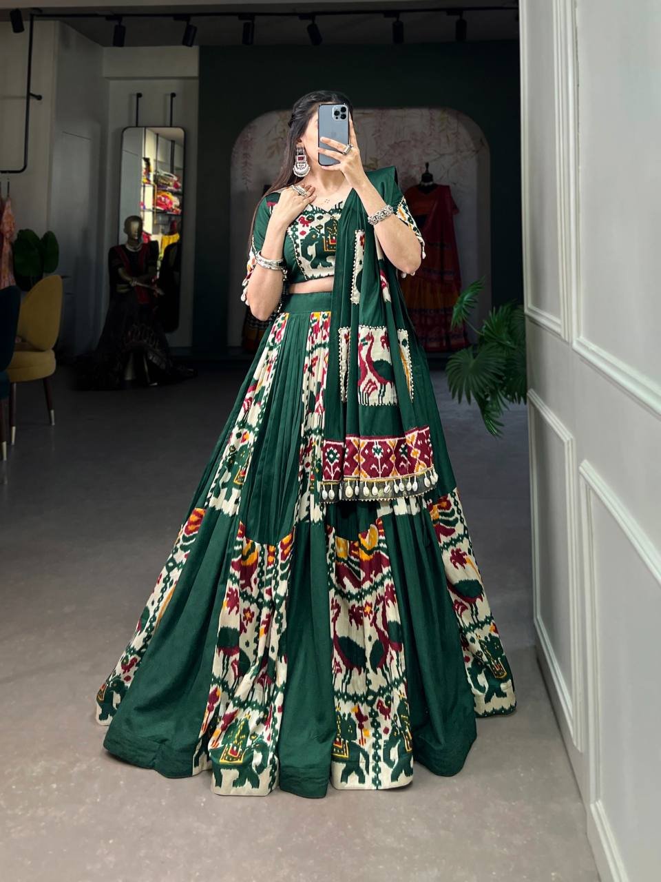 Rayon with Printed Silk Lehenga Choli: Exquisite Gota Patti and Cowrie Lace Detailing for a Touch of Elegance in Long-Length Designs! 🪷✨