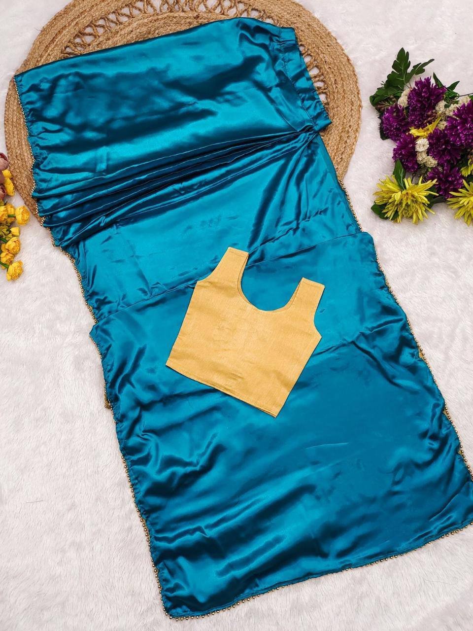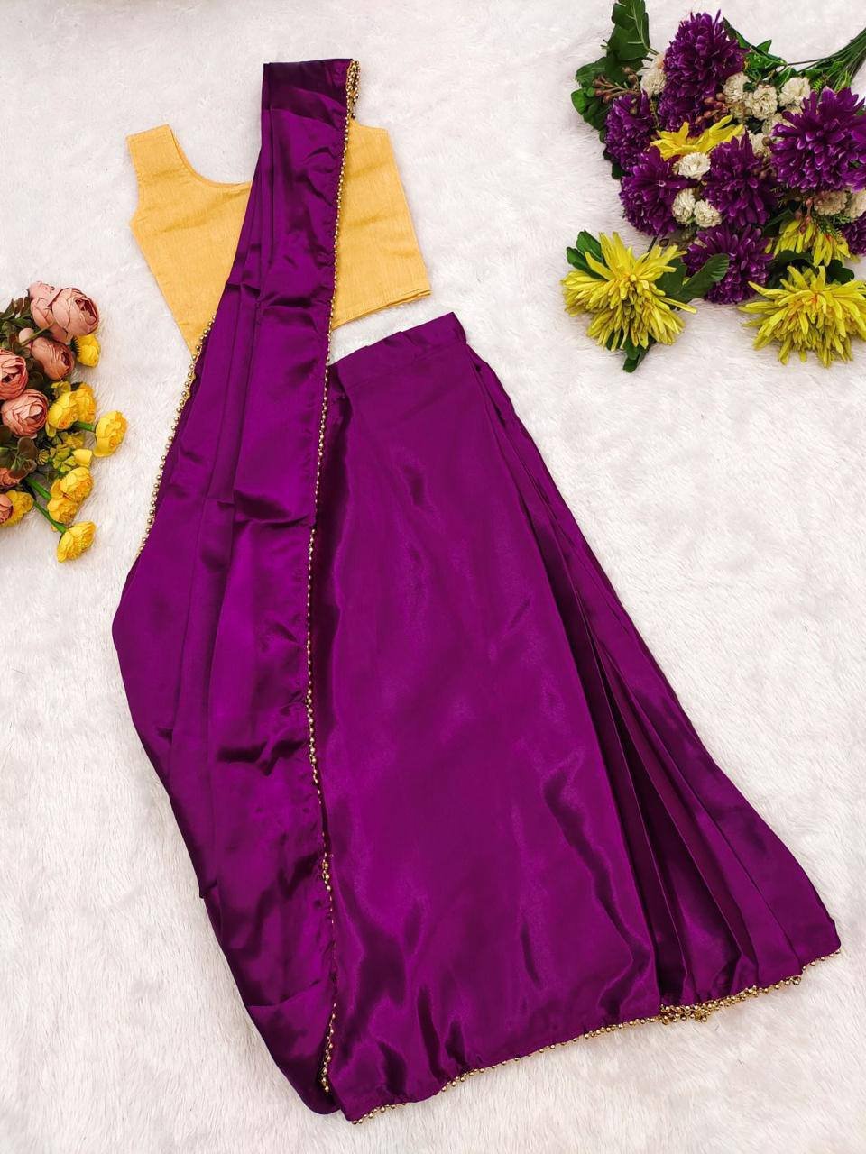 Ready-to-wear satin saree for kids is a beautiful 5 different colours color
