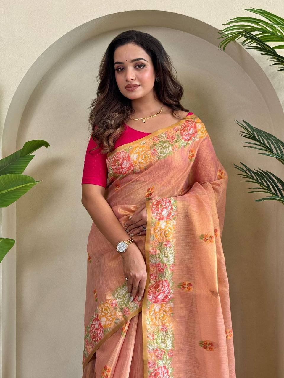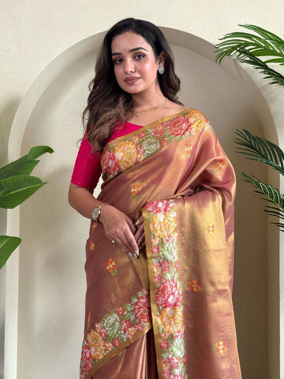 Launching Two Tone Soft Chiffon Tissue Space Silk Saree (2 Colors)