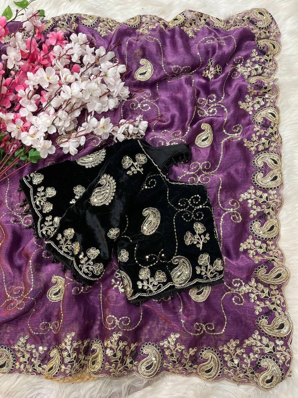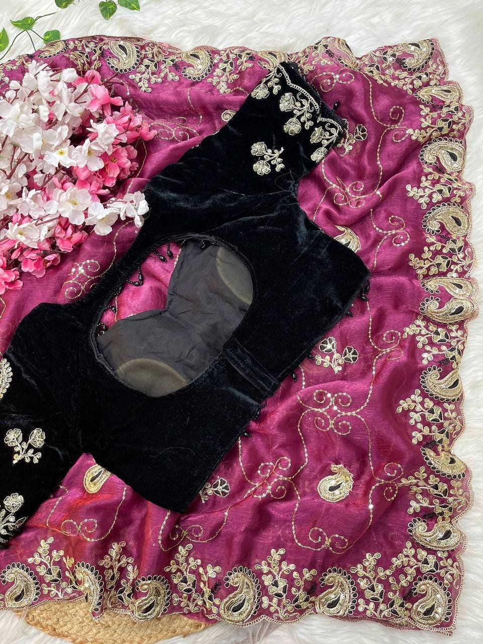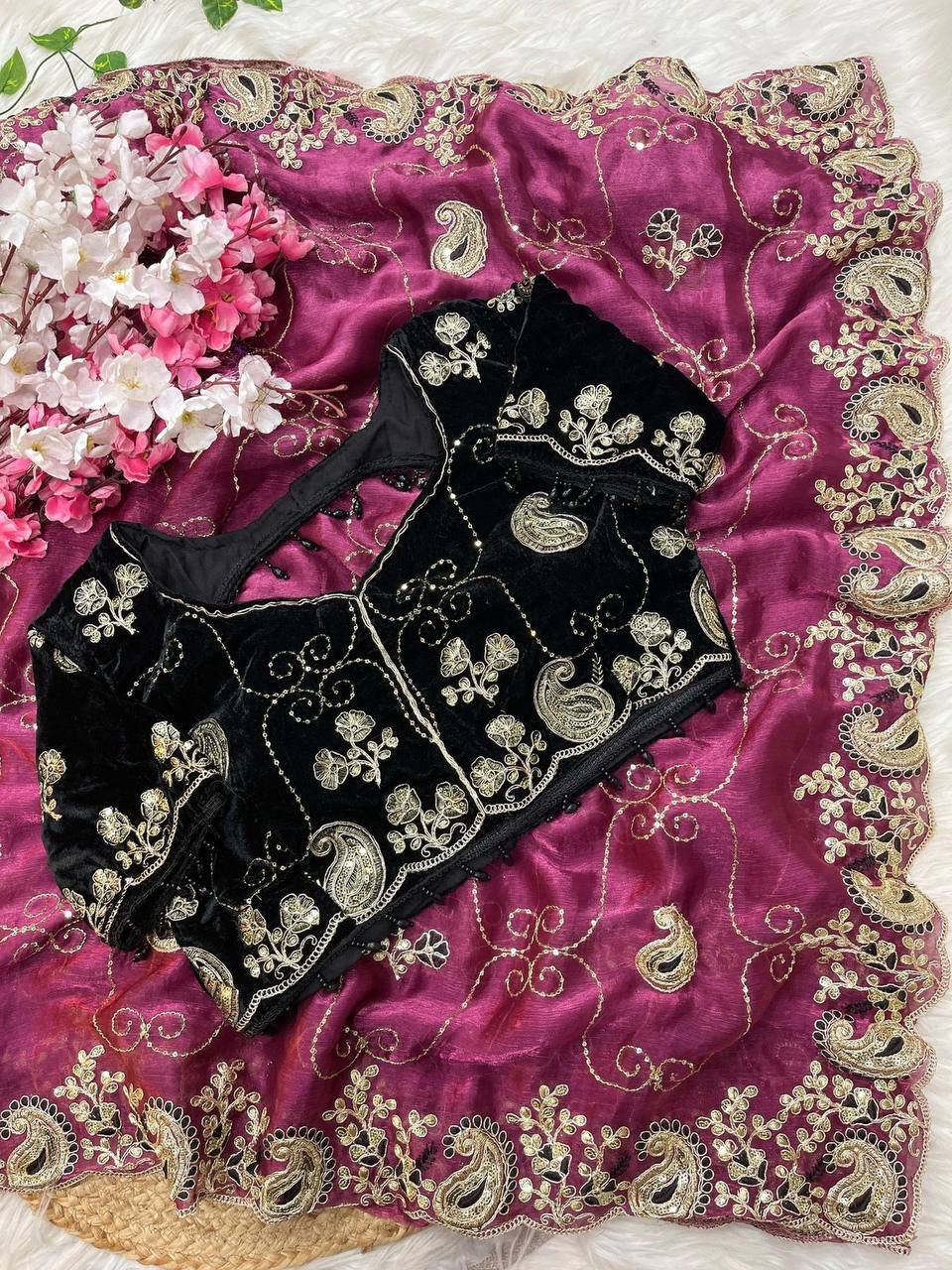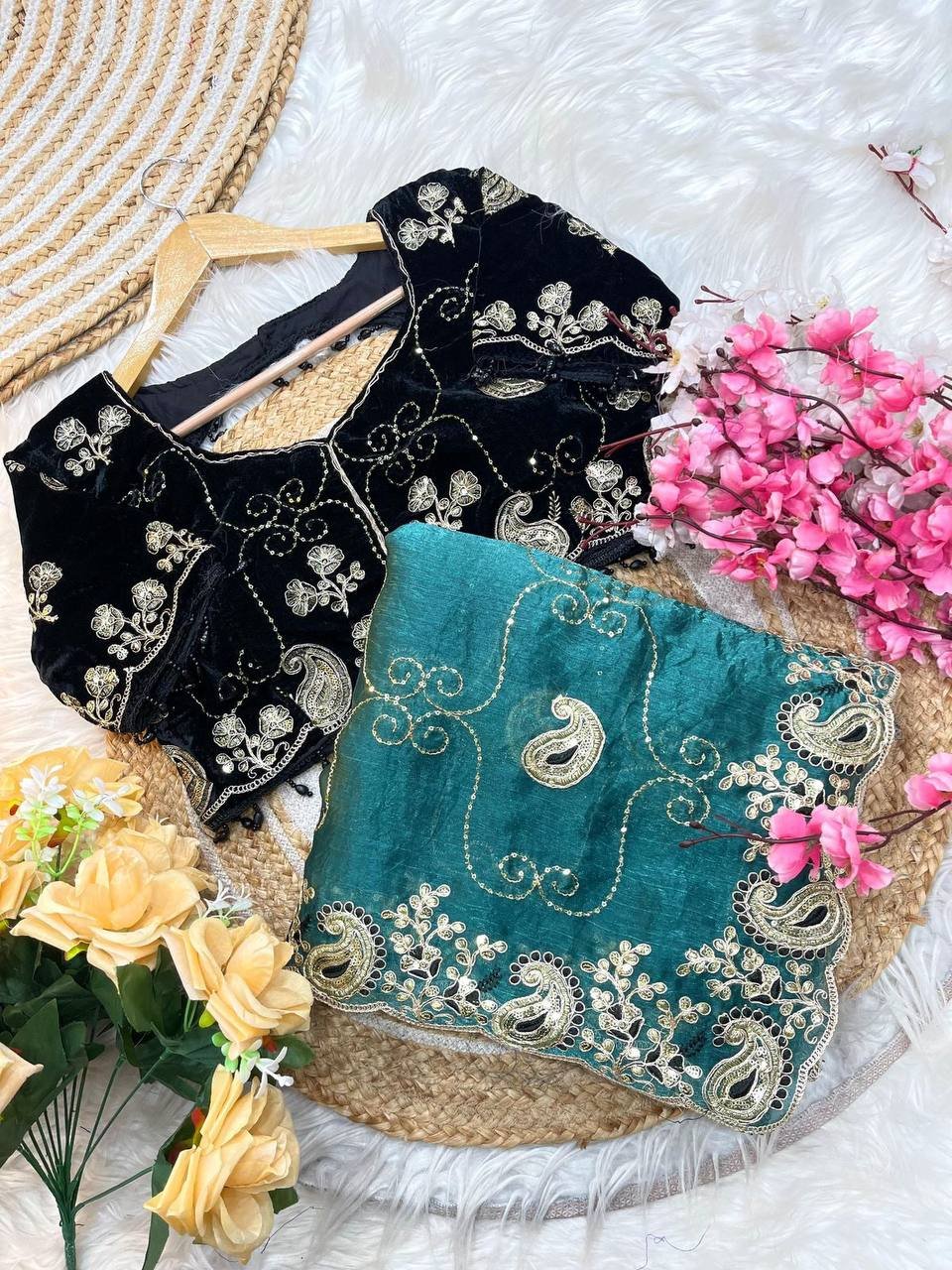 Paired in fully Stiched fancy pattern Blouse with heavy embroidery work on 9000 velvet fabrics nd tussels..