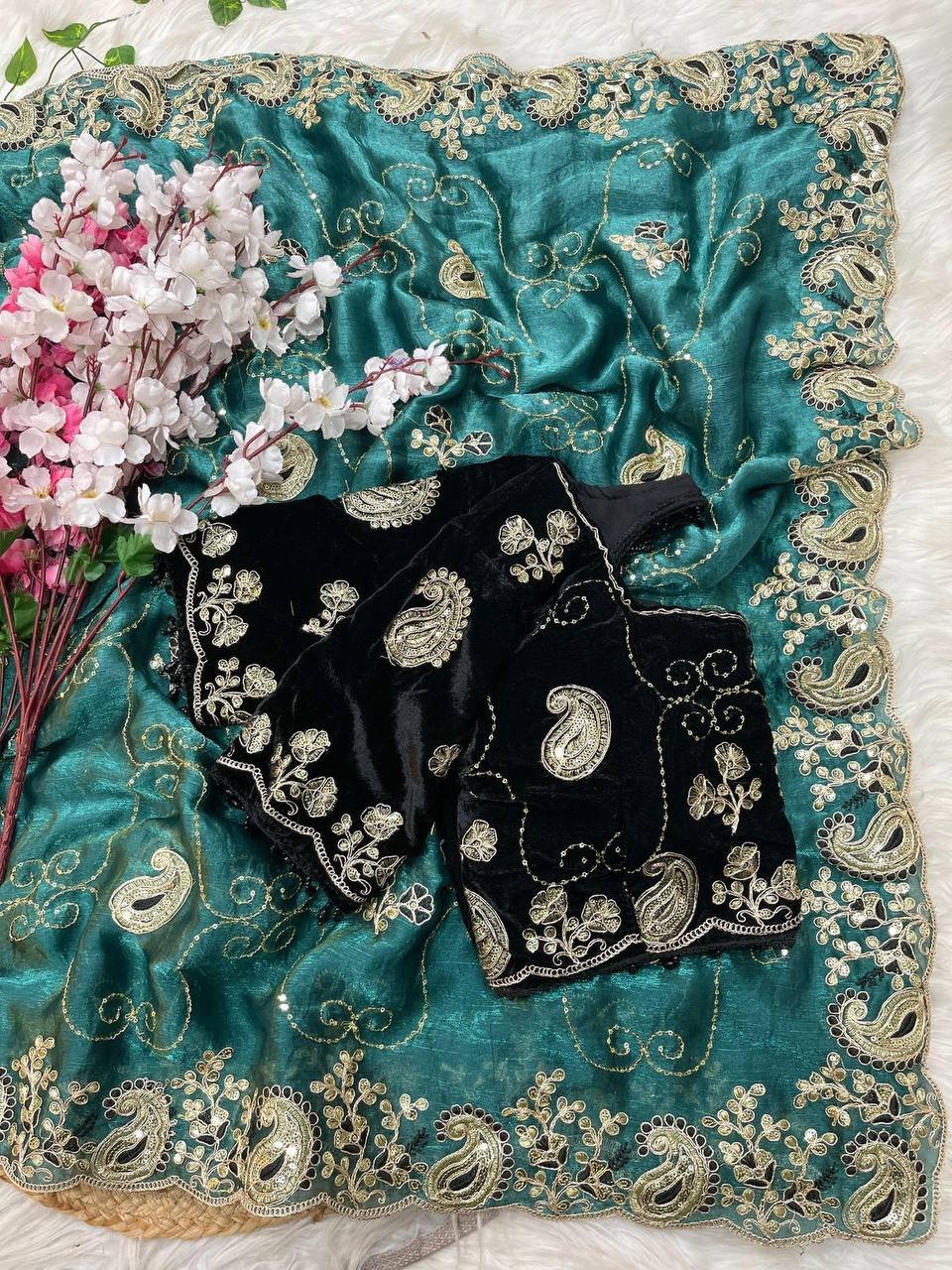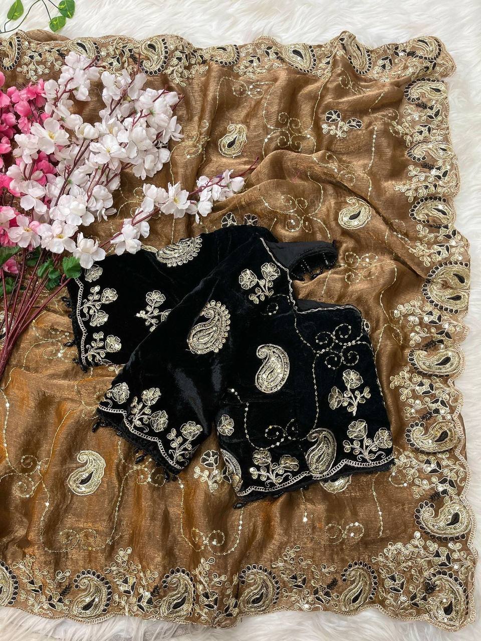 Rich look fabric with beautiful cording embroidery with 3 mm sequence work jhal in all over saree with zari aarco..