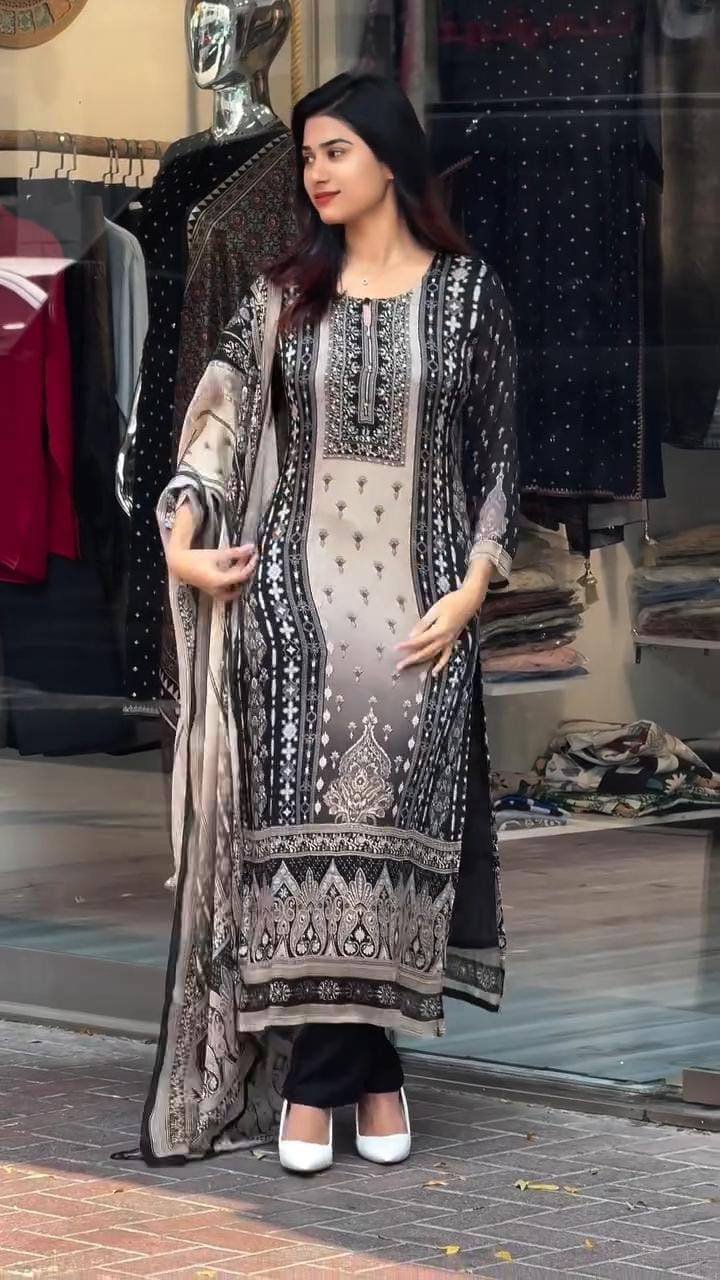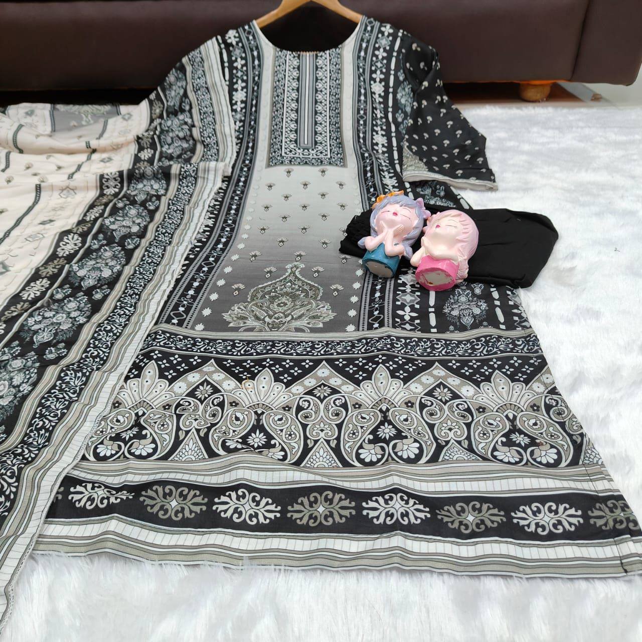 Stylish Black three-piece ethnic Pakistani suit (M TO 10XL)