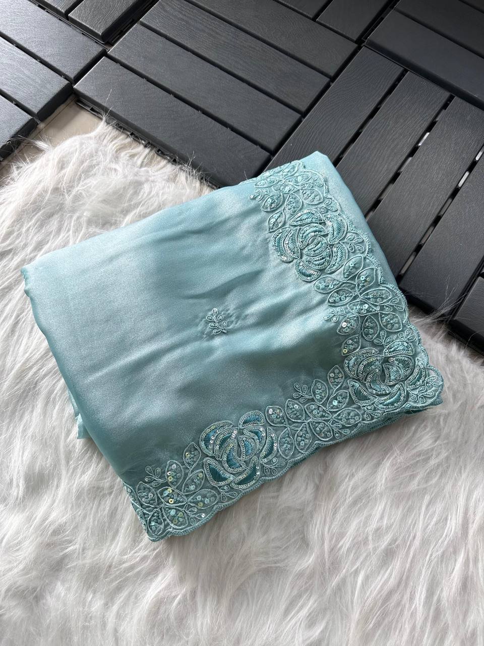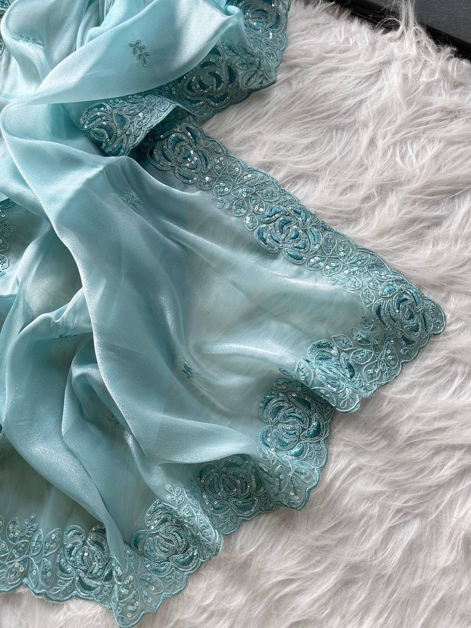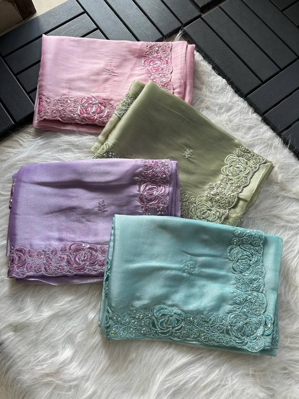 Super soft simmer tissue saree with beautiful embroidery codding sequins work on border in all over saree.