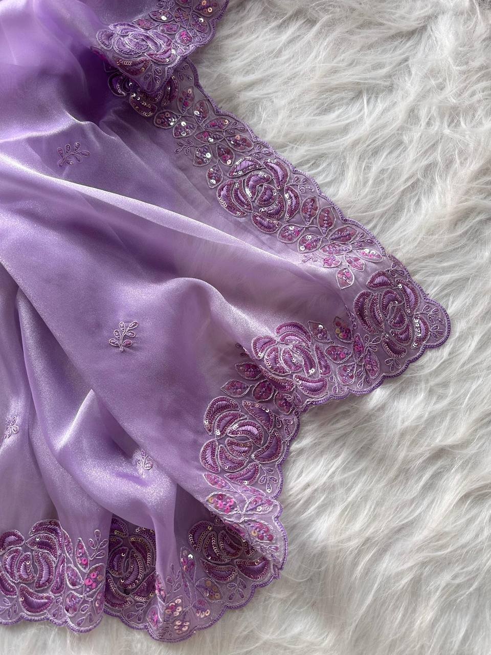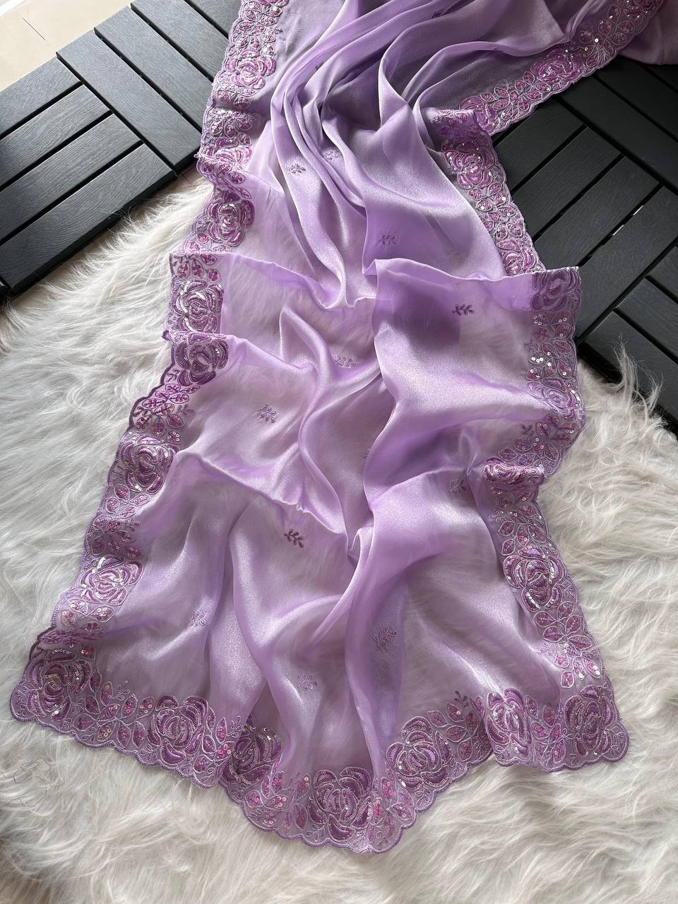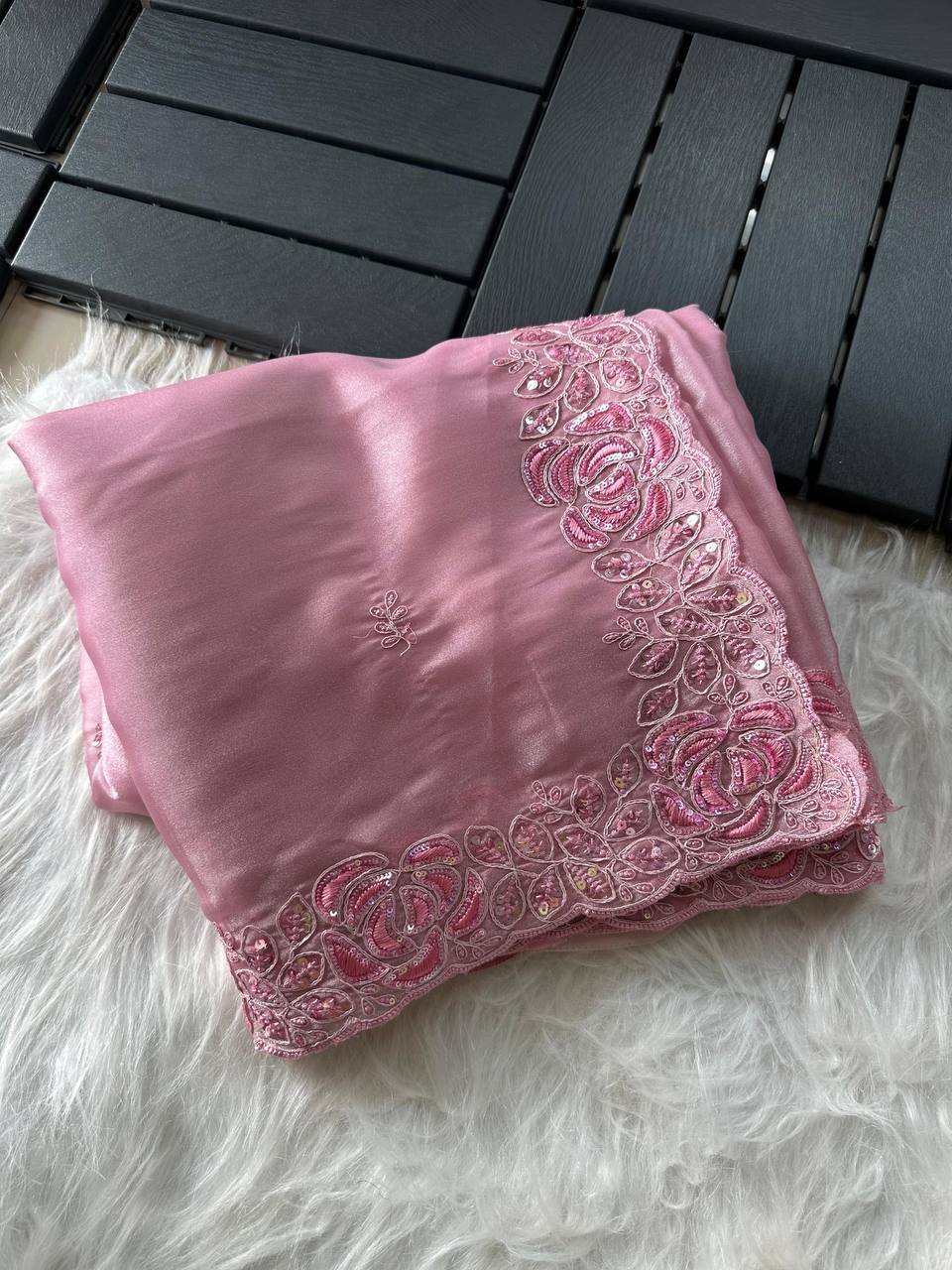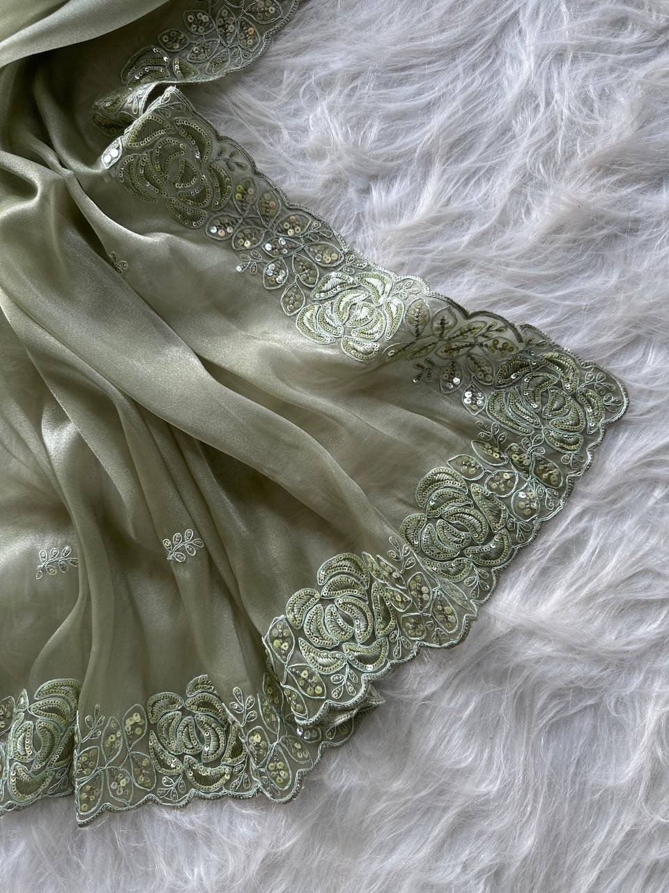 Super soft simmer tissue saree with beautiful embroidery codding sequins work on border in all over saree.